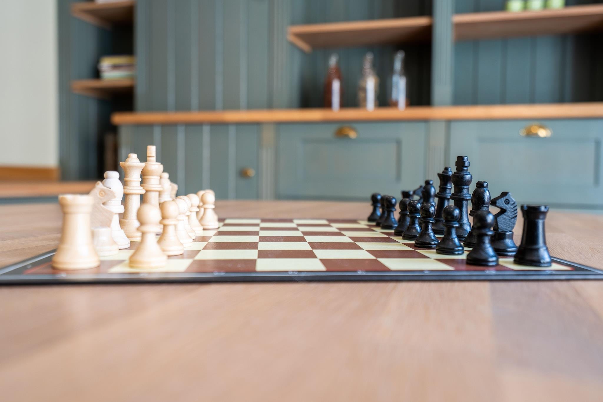 Parterre: (Eingangshalle, Wohnküche(Kochplatte, Toaster, Kochherd, Dunstabzugshaube, Kaffeemaschine(cups, Espresso, Filter, pads), Backofen, Mikrowelle, Spülmaschine, Kühlschrank, Kühlschrank), Wohn/Esszimmer(TV, Sitzecke), Schlafzimmer mit Badezimmer(Doppelbett, Doppelschlafcouch, Dusche), Schlafzimmer mit Badezimmer(Doppelbett, Doppelschlafcouch, Dusche), Toilette(Toilette), Spielzimmer(Spielzeug), Abstellraum(Tiefkühlschrank, Waschmaschine, Bügelbrett, Bügeleisen)) Zwischengeschoss: (Fernsehzimmer(TV, Sitzecke), Schlafzimmer(Doppelbett), Schlafzimmer(Doppelbett, Doppelschlafcouch), Schlafzimmer(Doppelbett, Doppelschlafcouch), Badezimmer(Badewanne, Dusche), Toilette(Toilette)) Freizeitraum(Tischfußball), Babybett, Terrasse, Garten, Gartenmöbel, Grill, Parkplatz, Hochstuhl