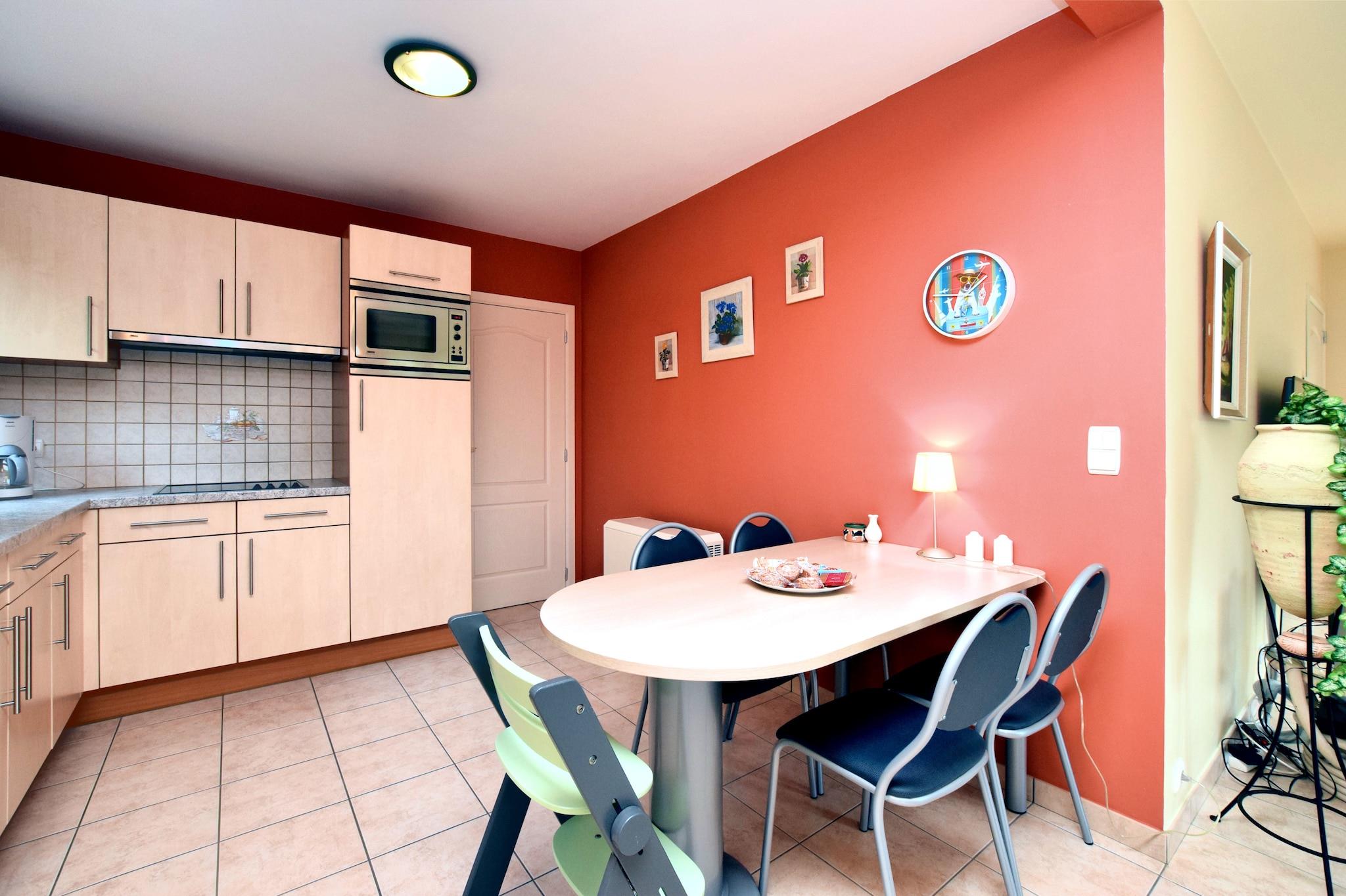 Entdecken Sie Komfort und Entspannung in diesem charmanten Ferienhaus mit 4 Schlafzimmern in Barvaux sur Ourthe, nahe Durbuy, nur 100 Meter vom Wald entfernt. Dieses geräumige Ferienhaus eignet sich perfekt für Familien oder Gruppen mit bis zu 8 Gästen und verfügt über eine Infrarotsauna, ideal zum Entspannen nach Outdoor-Abenteuern. Die offene Küche ist komplett mit modernen Geräten wie Geschirrspüler, Mikrowelle und Kaffeemaschine ausgestattet und ermöglicht die Zubereitung von Mahlzeiten, die Sie drinnen oder auf der überdachten Terrasse mit Grill genießen können. Der Wohn-/Essbereich bietet einen Flachbildfernseher, einen DVD-Player und eine Stereoanlage für Unterhaltung. Im Erdgeschoss befindet sich ein gemütliches Schlafzimmer mit Doppelbett und eigenem Bad. Im Obergeschoss befinden sich drei weitere Schlafzimmer und ein Familienbadezimmer mit Badewanne und Sauna. Junge Gäste werden den Sandkasten, die Rutsche und die Spielgeräte im Garten lieben. Kinderbetten und Hochstühle sind auf Anfrage erhältlich. Lokale Annehmlichkeiten wie der Lebensmittelladen, das Stadtzentrum und die Ourthe sind nur wenige Kilometer entfernt und machen dieses Ferienhaus zum idealen Ausgangspunkt für Erkundungstouren durch die wunderschönen belgischen Ardennen.