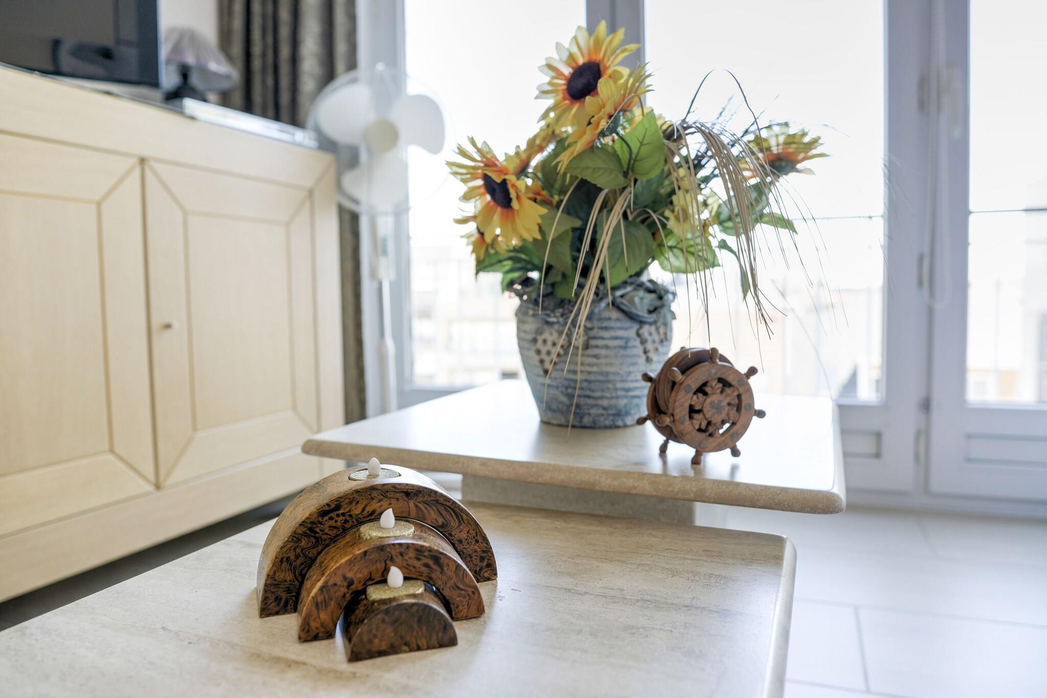 In der 5. Etage: (Wohnzimmer(2x Doppelschlafcouch, TV), Wohnküche(Esstisch(6 Personen), Wasserkocher, Toaster, Kochherd(elektrisch), Dunstabzugshaube, Kaffeemaschine, Backofen, Kombi-Mikrowelle), Schlafzimmer(Doppelbett), Badezimmer(Dusche, Waschbecken, Toilette), Babybett, Terrasse, Hochstuhl)