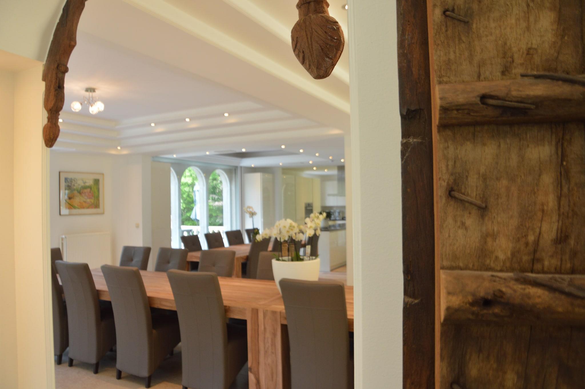 Dieses wunderschöne Landhaus liegt in Brakel, mitten in der Natur der Flämischen Ardennen. Dieses Haus wird NUR an Familien mit Kindern vermietet. Gruppen mit nur Erwachsene werden NICHT akzeptiert. Wenn Sie das Haus betreten, gelangen Sie in einen lauschigen Flur und haben das Gefühl, in einem Palast angekommen zu sein! Die Marmorböden und -treppen, die Säulen, die Sie überall wiederfinden, und die schönen Materialien, die verwendet wurden, überlassen nichts der Fantasie. Das große Wohnzimmer verfügt über einen prächtigen offenen Kamin. Der Essbereich grenzt an das Wohnzimmer und bietet genug Platz für die ganze Gruppe, während in der modernen, offenen Küche gemeinsam gekocht werden kann. Die Flügeltüren im Wohnzimmer führen auf die fantastische Terrasse, die Aussicht auf den sage und schreibe 8 ha großen, parkartigen Garten bieten. Sie können hier herrlich durch die schöne Parklandschaft mit verschiedenen Teichen, einem Wald und verschiedenen gemütlichen Plätzen spazieren, an denen Sie in Ruhe sitzen oder wo die Kinder schön spielen können. In der Umgebung finden Sie zahlreiche größere und kleinere Naturgebiete. Sie können die bekannte "Runde von Flandern" mit dem Fahrrad abfahren oder Gent, Oudenaarde oder Geraardsbergen besuchen. Es gibt auch viele Denkmäler: geschützte Kapellen, die Mariagrotten und Wassermühlen auf dem Land, beeindruckende Schlösser, Burgen und Kathedralen. Sehr zu empfehlen! Im Erdgeschoss ist ein Raum für den Hausmeister reserviert.