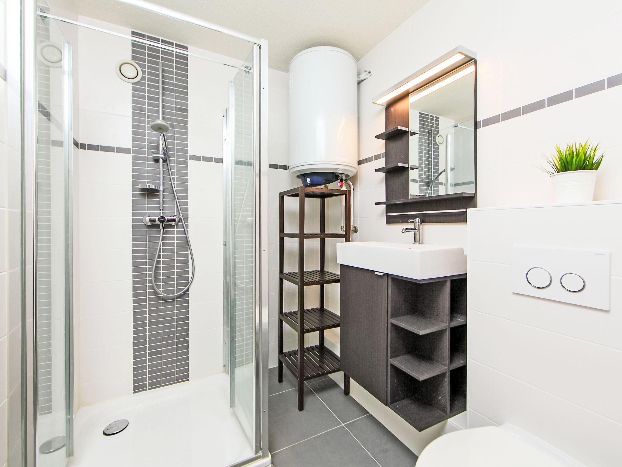 "Studio 604 with balcony", 1-Zimmer-Studio 25 m2 im 5. Stock, Ostlage. Komfortabel und modern eingerichtet: Wohn-/Schlafzimmer mit 1 Diwanbett (140 cm, Länge 200 cm), Sat-TV (Flachbildschirm), E-Heizung. Ausgang zum Balkon, Richtung Südwesten. Offene Küche (Backofen, 4 Glaskeramikplatten, Tiefkühler, elektrische Kaffeemaschine). Dusche/WC. E-Heizung. Balkon. Balkonmöbel. Seitliche Sicht auf das Meer. Zur Verfügung: Haartrockner. Internet (WLAN, gratis). Maximal 1 Haustier/Hund erlaubt. LD325110
