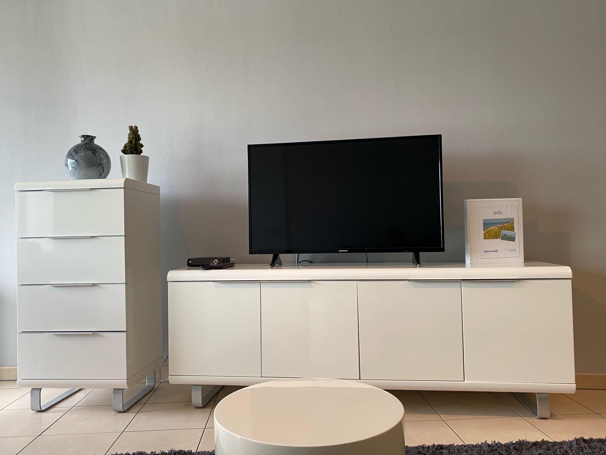 "Queen Mary 302 with balcony", 2-Zimmer-Wohnung 50 m2 im 3. Stock. Hell, komfortabel eingerichtet: Eingang mit sep. WC und E-Heizung. Wohn-/Esszimmer mit 1 Doppeldiwanbett (140 cm, Länge 200 cm), Esstisch, TV und Internationale TV-Sender (Flachbildschirm), E-Heizung. Ausgang zum Balkon. 1 Doppelzimmer mit 1 Doppelbett (160 cm, Länge 200 cm). Offene Küche (Geschirrspüler, 4 Glaskeramikplatten, Toaster, Wasserkocher, Tiefkühler, elektrische Kaffeemaschine, Kombinationsmikrowelle). Bad/Dusche. Balkon 3 m2. Terrassenmöbel. Zur Verfügung: Haartrockner. Internet (WLAN, gratis). Bitte beachten: Nichtraucher-Haus. LD378630
