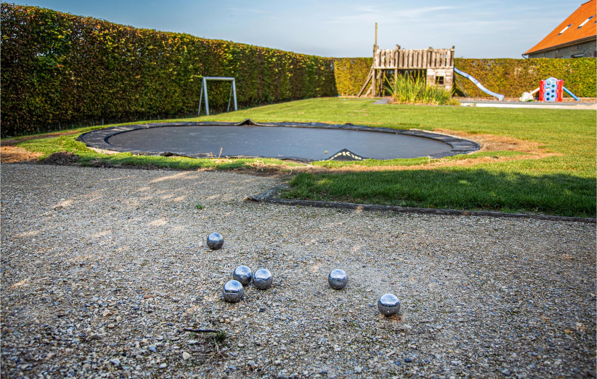 Sind Sie mit Familie und Freunden auf der Suche nach einer komfortablen Gruppenunterkunft mit vielen Einrichtungen für alle Altersgruppen, dann ist dieses große Ferienhaus in der wunderschönen Umgebung von Diksmuide definitiv die richtige Wahl. Diese Gruppenunterkunft verfügt über eine große Terrasse und einen traumhaften Garten mit Panoramablick auf die Wiesen und diversen Spielgeräten wie eine Rutsche, Sandkasten und Trampolin. Der Garten bietet auch Platz für Fußball und Boccia und ist mit einem Grill, Picknicktischen und Sonnenliegen ausgestattet.