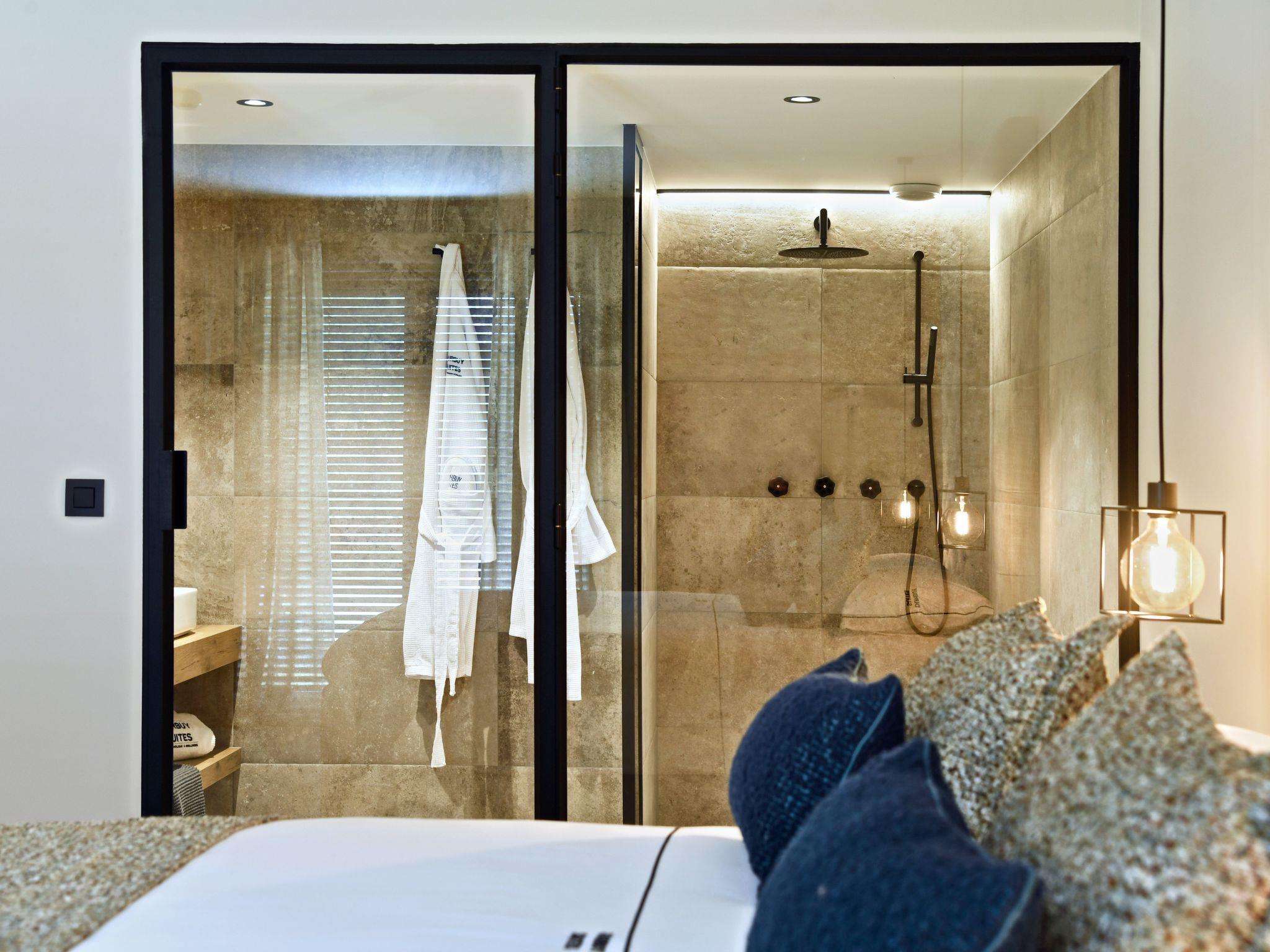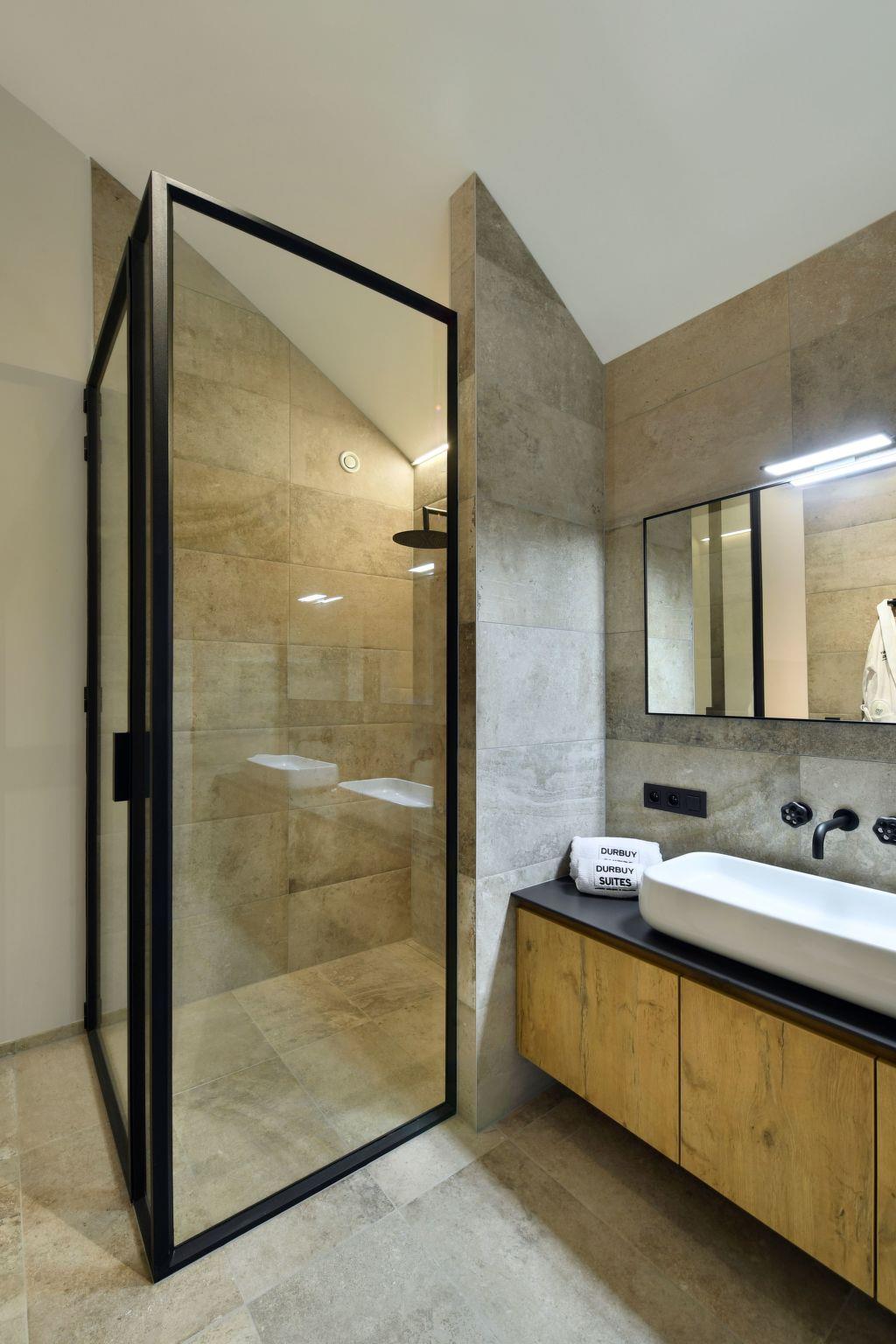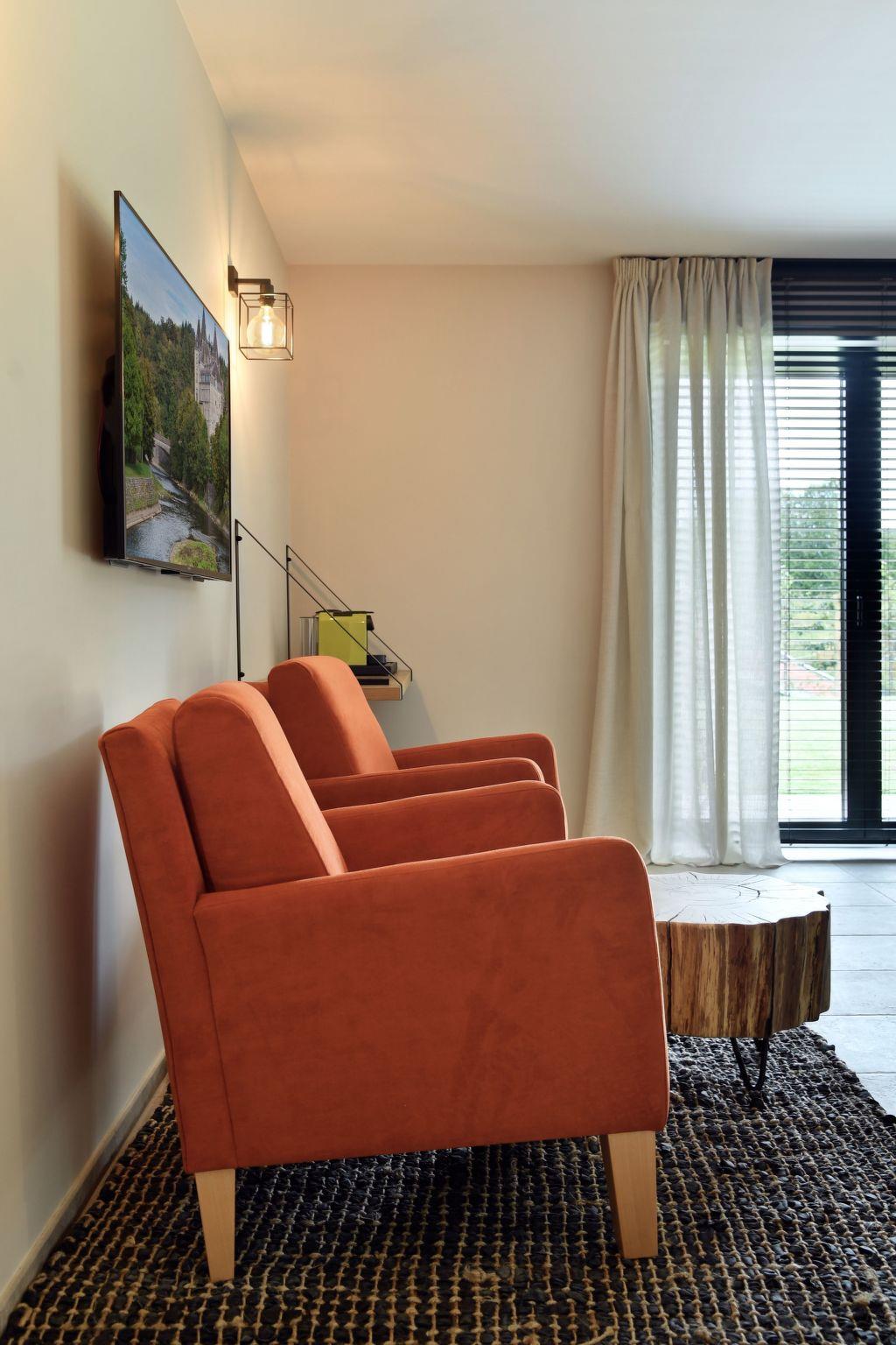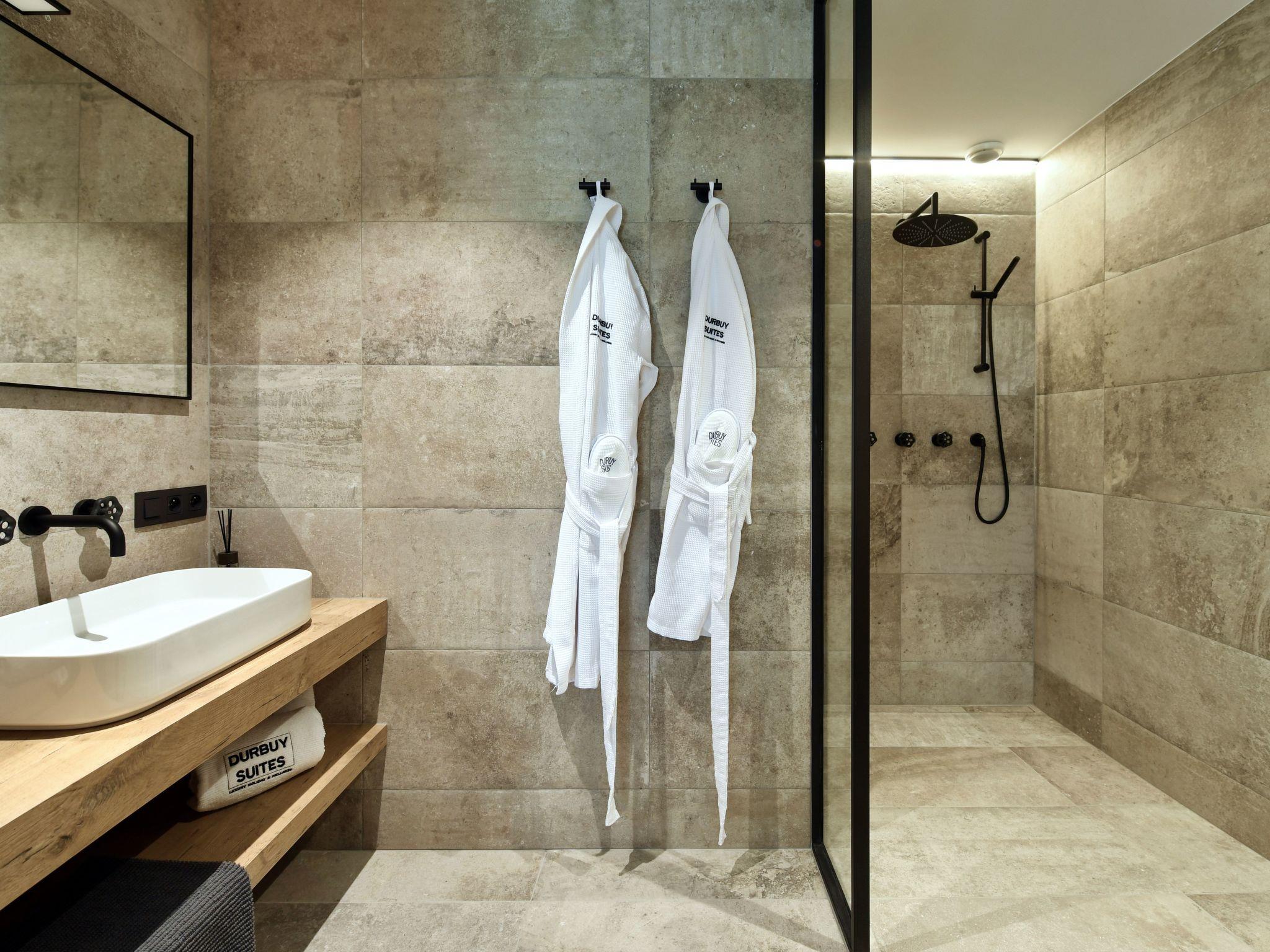 Treten Sie ein in die Welt von Luxus und Komfort in den Durbuy Suites. Das Innere dieser Unterkünfte strahlt eine Atmosphäre von Eleganz und Raffinesse aus. Die geräumigen Suiten sind stilvoll mit modernen Möbeln und warmen Farben eingerichtet und schaffen ein einladendes Ambiente. Die Gäste werden mit hochwertigen Annehmlichkeiten verwöhnt, darunter plüschige Kingsize-Betten, eine voll ausgestattete Küche und eine schicke Sitzecke mit einem Flachbildfernseher. Die großen Fenster lassen viel natürliches Licht herein und bieten einen herrlichen Blick auf die umliegende Natur oder die charmante Stadt Durbuy. Die Badezimmer sind eine Oase der Ruhe, mit Glasduschkabinen, Marmorwaschbecken und weichen Handtüchern. Einige Suiten verfügen sogar über einen privaten Balkon oder eine Terrasse, auf der man in aller Ruhe an der frischen Luft frühstücken kann. Ganz gleich, ob Sie einen romantischen Kurzurlaub, einen Familienurlaub oder ein Wochenende mit Freunden verbringen möchten, das Innere der Durbuy Suites bietet den idealen Rahmen für einen unvergesslichen Aufenthalt.
