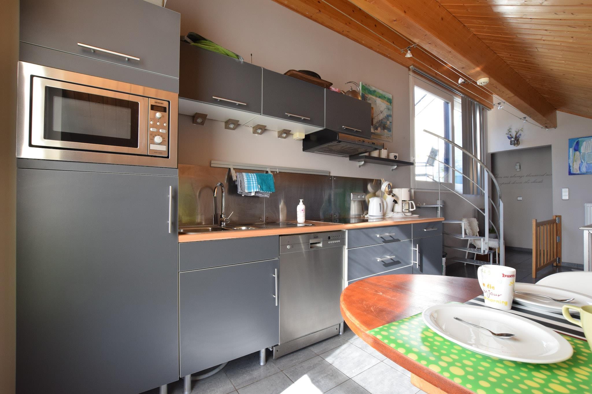 Mitten auf einem über ein Hektar großen Grundstück, nicht weit entfernt von Durbuy und Barvaux, in einer Oase der Stille und im Grünen, ist diese Unterkunft im Grunde ein neues Nebengebäude eines Hauses mit separatem Eingang. Die Unterkunft ist neu (Mitte Dezember 2005), luxuriös und sehr komfortabel. Bei Reservierung (2 Stunden pro Tag) können Sie den herrlichen, überdachten und beheizten (27C) Pool genießen. Lassen Sie sich in der Umgebung von der Entdeckung der mittelalterlichen Kleinstadt Durbuy (7km) verführen, die für ihre gute Küche bekannt ist oder von Wéris (10km) und seinen Menhiren, von Ny (10km), dass eines der schönsten Dörfer Walloniens ist oder aber von den sagenhaften Höhlen von Hotton (10km). Die Entspannungsmöglichkeiten in der Nähe sind zahlreich: Angeln und Baden im 500m entfernten Fluss Ourthe und 2 herrliche Golfplätze 8km entfernt: der Golfplatz von Durbuy und der Five Nations Golfclub (es besteht die Möglichkeit, bei den Eigentümern Greenfees zu reservieren), Abenteuersport, Kajak fahren, Rafting, Klettern, Tennis; Quadfahren, Minigolf, Skifahren an der Baraque de Fraiture (30km) ohne dabei eine riesige Auswahl an wunderschönen Spaziergängen zu vergessen.