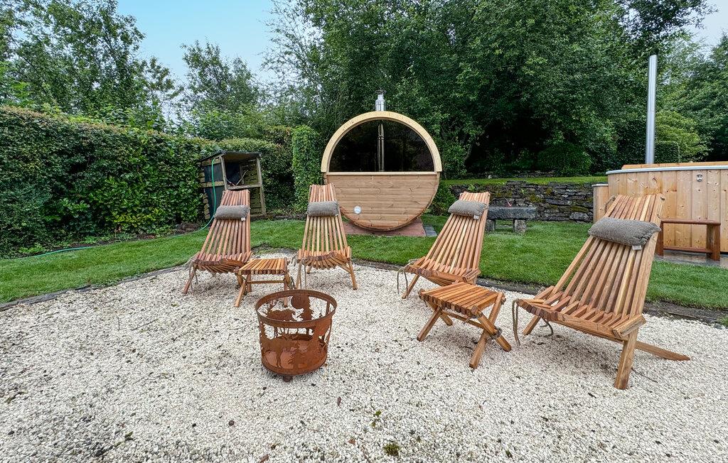 Genießen Sie mit Ihrer Familie und Freunden den parkähnlichen Garten, der mit Whirlpool und Sauna sehr komfortabel ausgestattet ist. Selbstverständlich stehen Ihnen im Außenbereich auch Gartenmöbel, Sonnenliegen und ein Grill zur Verfügung, damit Sie Ihre Urlaubstage im Freien voll auskosten können. Im hinteren Teil des Gartens gibt es einen Lagerfeuerplatz, an dem Sie sich am Abend versammeln und gemeinsam Marshmallows rösten können.