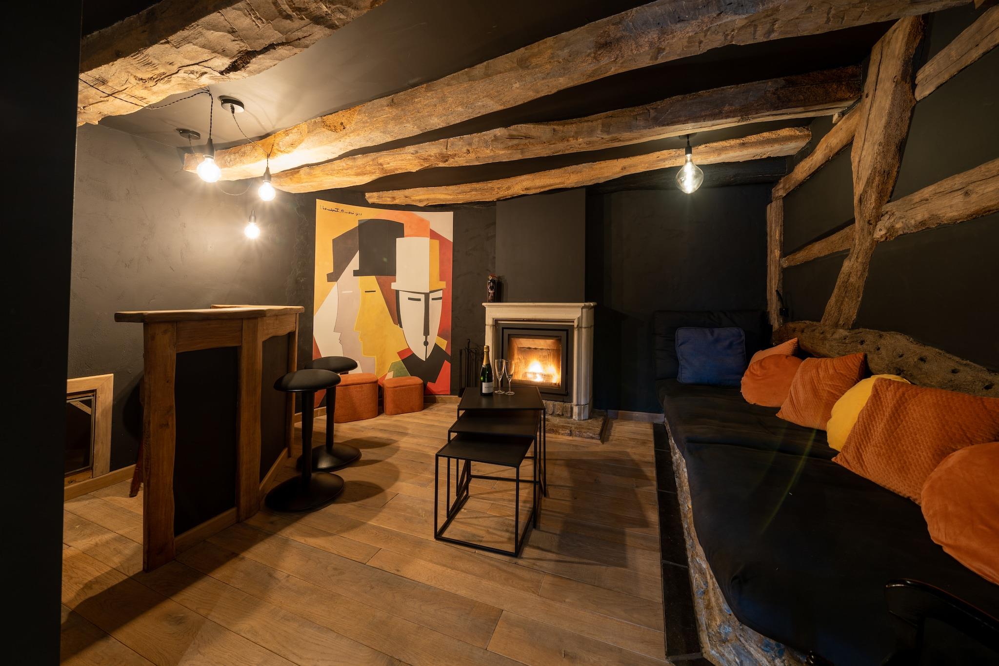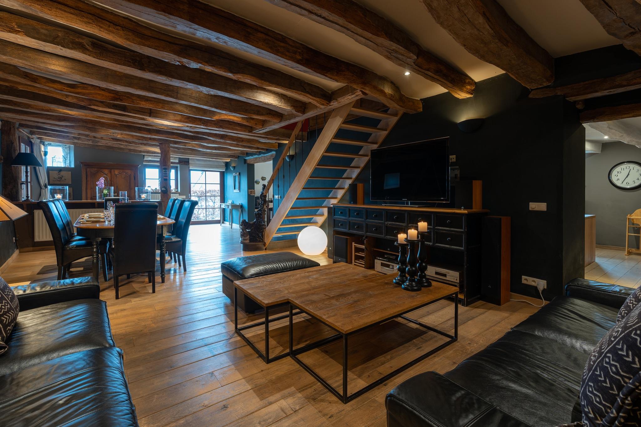 Tauchen Sie ein in die Vergangenheit mit diesem wunderschön renovierten Ferienhaus aus dem 17. Jahrhundert in Gedinne, wo authentischer Charme auf modernen Luxus trifft. Mit 5 Schlafzimmern bietet dieses geräumige Refugium bequem Platz für bis zu 9 Gäste und ist somit ideal für große Familien oder Gruppen. Genießen Sie die private Sauna, die Zentralheizung und den Holzkamin und entspannen Sie im Herzen der Ardennen. Das Haus verfügt über eine voll ausgestattete Küche, einen großen Essbereich und zwei gemütliche Wohnbereiche. Kinder werden das Spielzimmer und den Laufstall lieben, während Erwachsene auf der überdachten Terrasse oder im umzäunten Garten mit Grill entspannen können. Zur weiteren Ausstattung gehören eine Waschmaschine, ein Parkplatz und WLAN. Ein Kinderbett und ein Hochstuhl sind auf Anfrage erhältlich. Bitte beachten Sie: Das Aufladen von Elektrofahrzeugen wird separat berechnet, sofern dies gestattet ist. Dieses Haus liegt nur 300 m vom Wald und wenige Schritte vom Stadtzentrum und Restaurants entfernt und eignet sich ideal zum Wandern, Radfahren und Erkunden des Euro Space Centers (10 km), des Bücherdorfs Redu (13 km) und von Bouillon (30 km). Egal, ob Sie im Garten Wein trinken oder die Ardennen erkunden, dieses Haus bietet einen zeitlosen und ruhigen Rückzugsort.