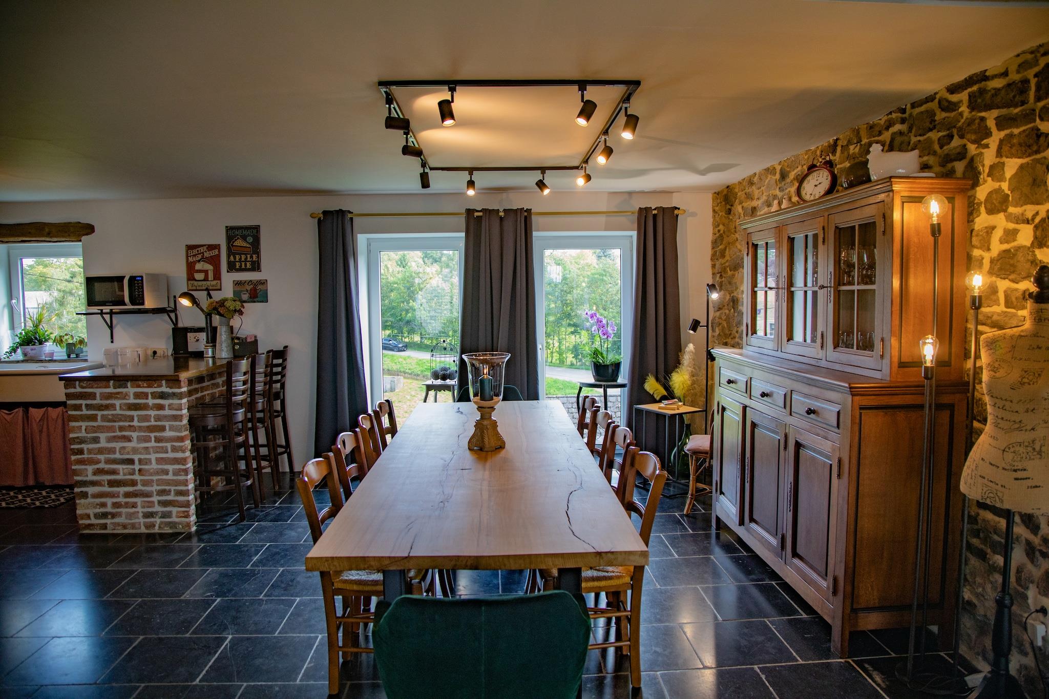 Eingebettet im ruhigen Dorf Gimnée (Doische) bietet dieses charmante Ferienhaus mit 4 Schlafzimmern einen gemütlichen Rückzugsort für bis zu 9 Gäste. In der Nähe von Namur und den bezaubernden Ardennen gelegen, ist es ideal für Familien und Gruppen, die einen naturnahen Urlaub verbringen möchten. Genießen Sie Spaziergänge durch das nahegelegene Stadtzentrum (nur 100 m entfernt) oder genießen Sie lokale Spezialitäten in Restaurants und Supermärkten nur 3 km entfernt. Das 2008 erbaute Ferienhaus strahlt mit Zentralheizung und einladendem Ambiente Wärme aus. Die offene Küche lädt zum gemeinsamen Kochen mit Ihren Lieben ein, während der private, eingezäunte Garten perfekt zum Essen im Freien, Grillen und Entspannen in der Sonne ist. Kinder werden die Spielgeräte lieben, und Eltern werden die zwei Hochstühle und Kinderbetten zu schätzen wissen. Ob Wandern, Kanufahren, Skifahren oder Radfahren durch die Ardennen – dieses haustierfreundliche Ferienhaus bietet Komfort und Charme zum Entspannen nach jedem Abenteuer. Zwei Haustiere sind gegen eine geringe Gebühr willkommen, damit kein Familienmitglied zurückgelassen wird.