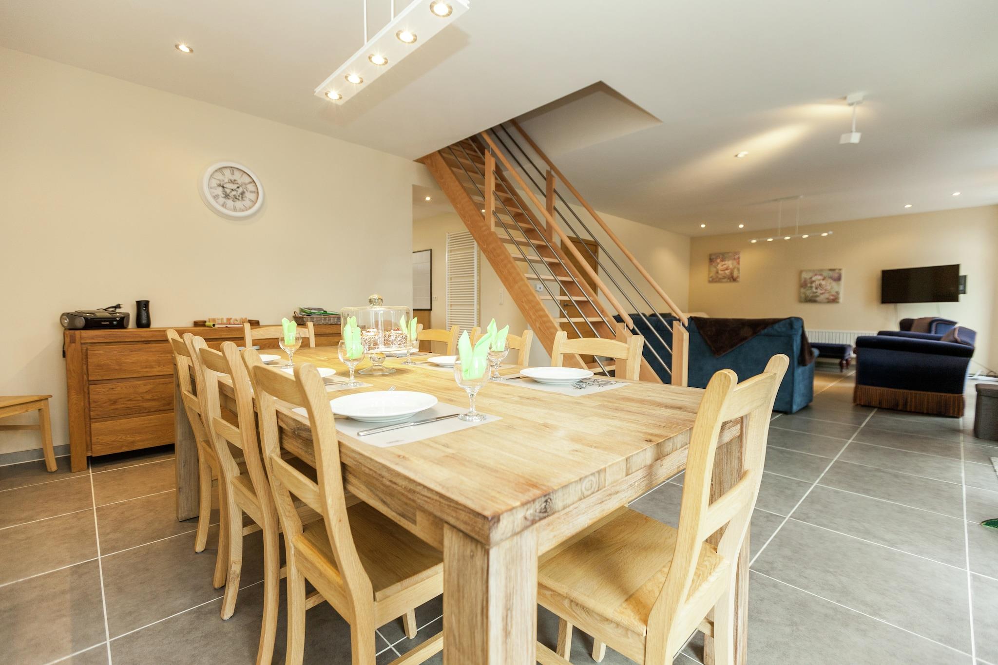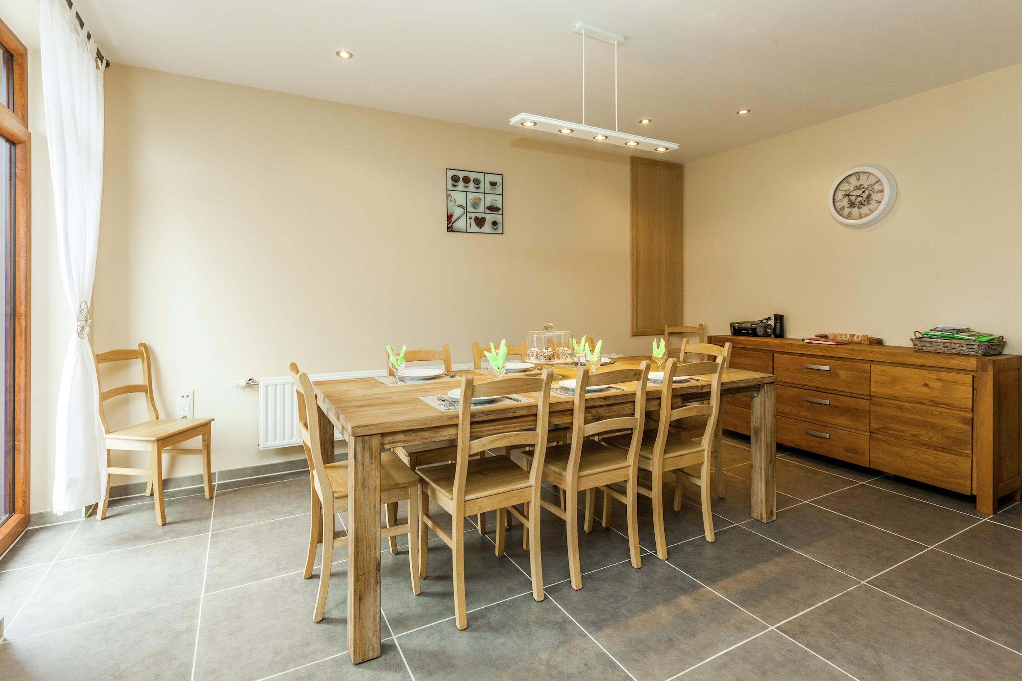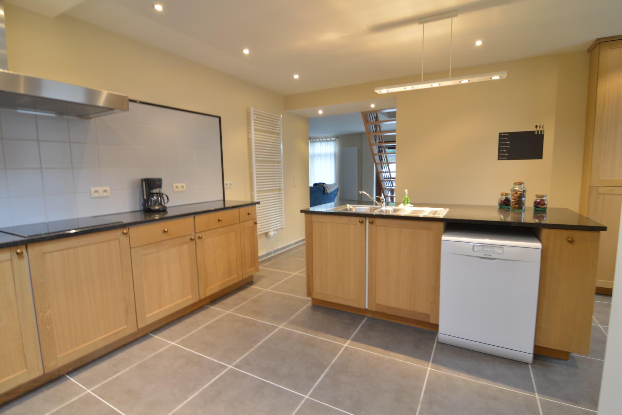 Dieses moderne Ferienhaus mit 4 Schlafzimmern liegt im ruhigen Dorf Glabbeek und bietet einen komfortablen und gut ausgestatteten Aufenthalt für bis zu 8 Gäste. Es ist ideal für Familien oder kleine Gruppen und verfügt über einen eingezäunten Garten, eine private Terrasse und kinderfreundliche Annehmlichkeiten. Im Erdgeschoss befindet sich eine voll ausgestattete Küche mit Kaffeemaschine, Backofen, Mikrowelle, Geschirrspüler und Kühl-Gefrierkombination. Das Wohn-/Esszimmer ist mit einem Digital-TV ausgestattet. In der Speisekammer finden Sie eine Waschmaschine und einen Trockner. Auf dieser Ebene befindet sich auch ein separates WC. Im Obergeschoss verfügt jedes der 4 Schlafzimmer über zwei Einzelbetten, einen Fernseher und ein eigenes Bad mit Dusche, Waschbecken und WC. So genießen Sie Privatsphäre und Komfort für alle Gäste. Genießen Sie Ihre Mahlzeiten im möblierten Garten und lassen Sie Ihre Kinder sicher spielen, während Sie sich entspannen. Extras: – Kostenloses WLAN – Parkplätze vor Ort – Kinderbett und Hochstuhl inklusive – Haustierfreundlich (max. 1 Haustier) – Restaurants im Umkreis von 1,2 km