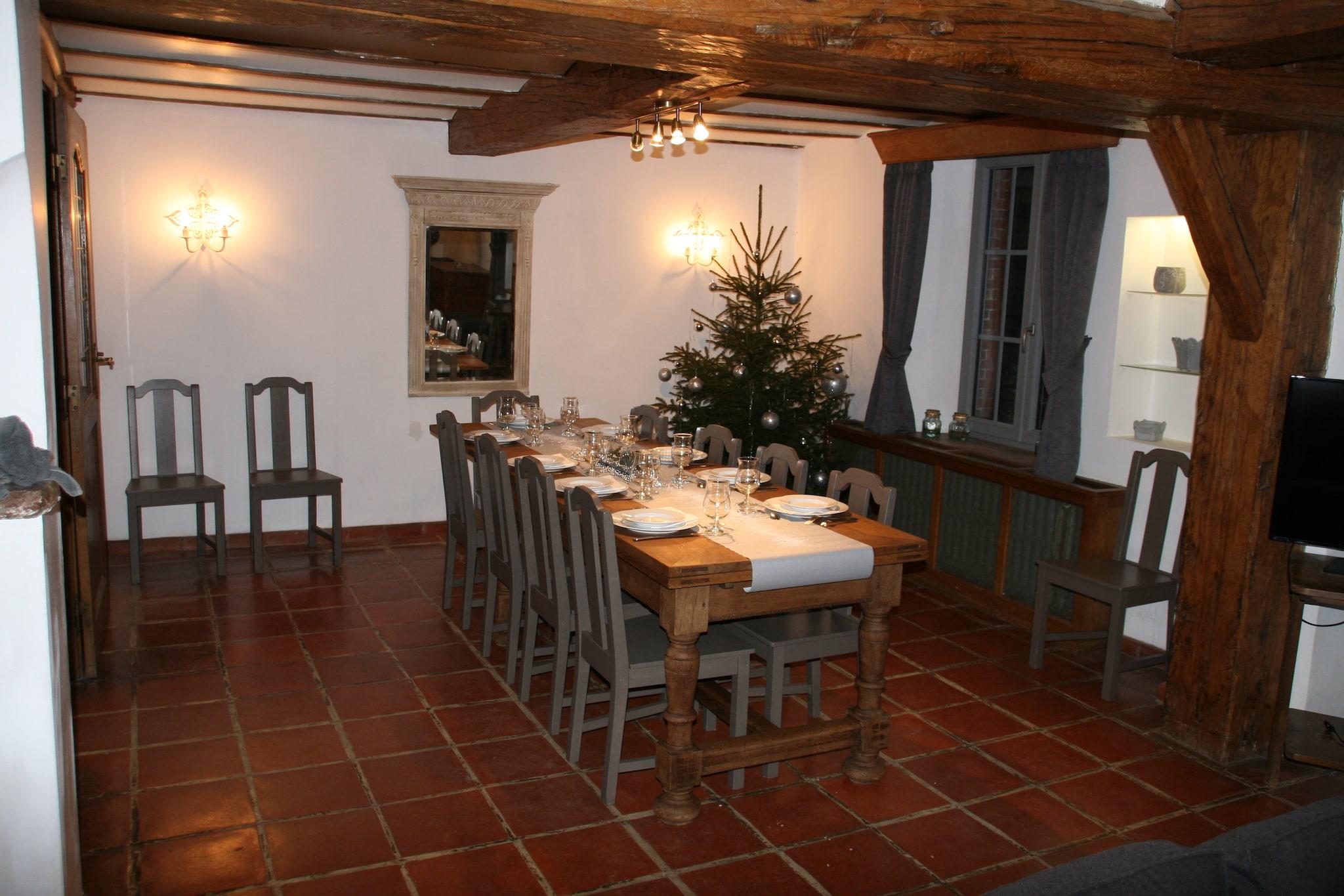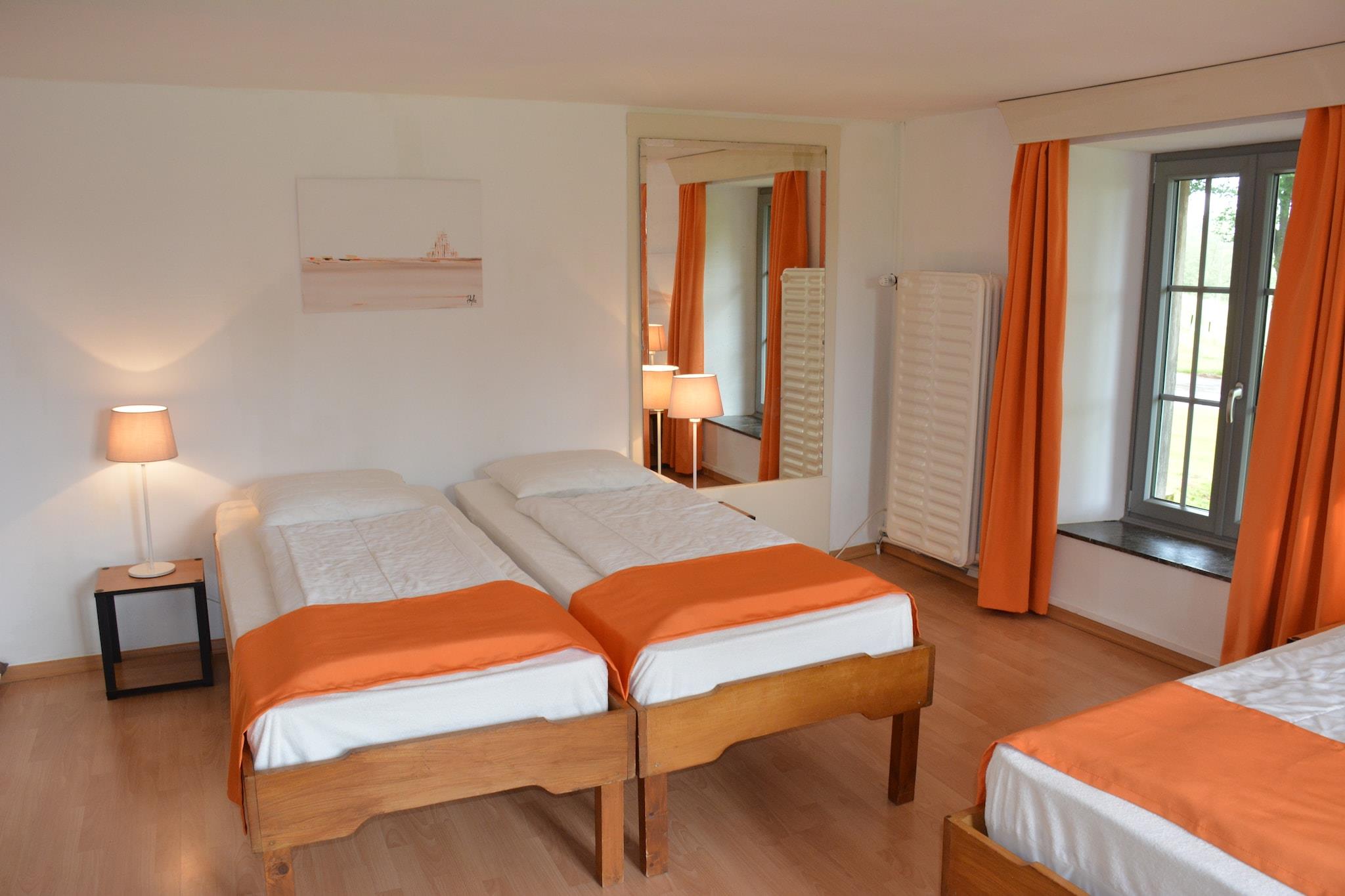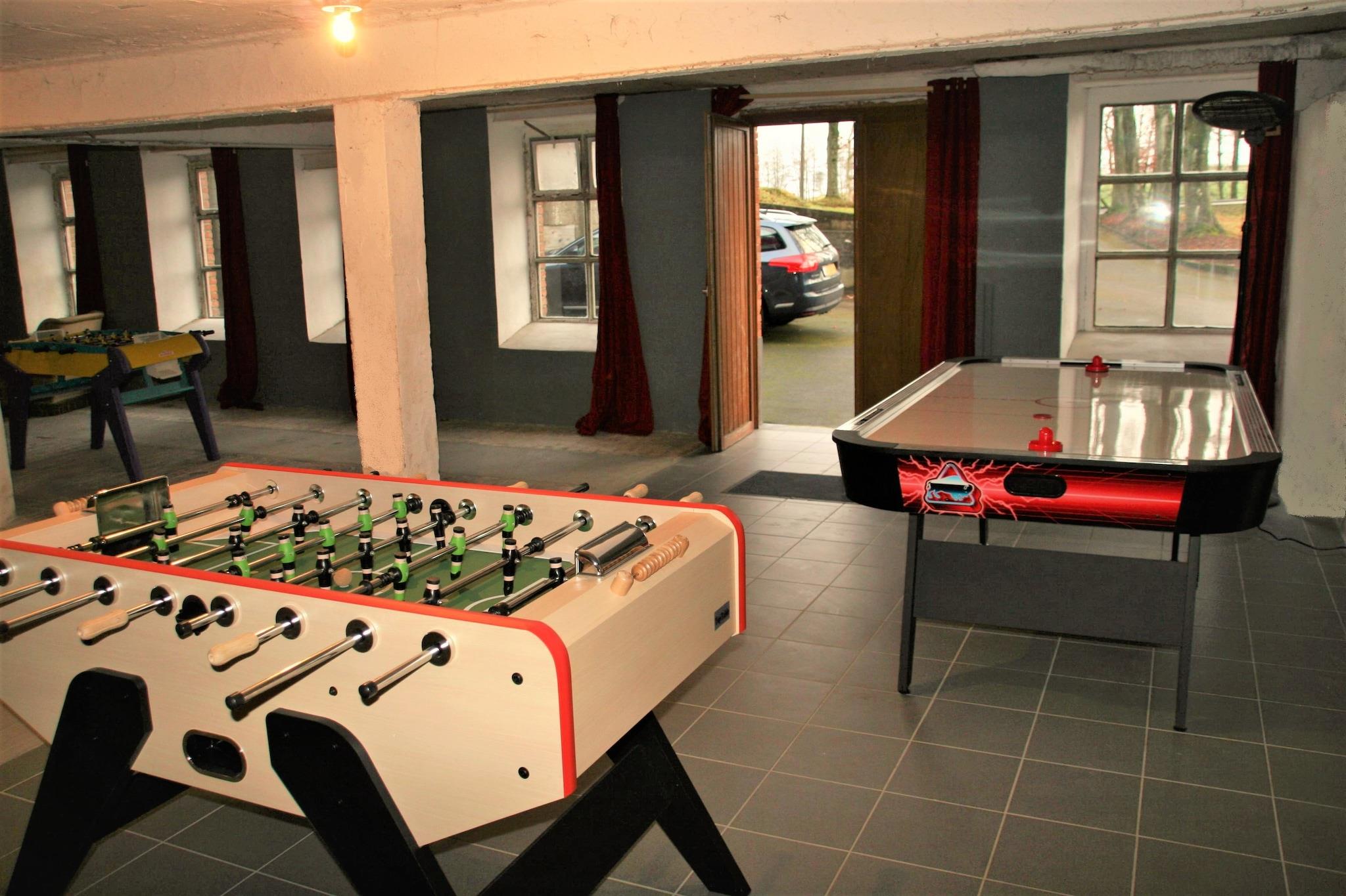 Parterre: (Eingangshalle, Küche(Kochherd(Induktion), Kaffeemaschine, Backofen, Mikrowelle, Spülmaschine, Kühlschrank), Wohn/Esszimmer(TV, Esstisch, Herd(Holz), Sitzecke, Hochstuhl), Schlafzimmer(Einzelbett), Badezimmer(Dusche, Waschbecken), Toilette) In der 1. Etage: (Schlafzimmer(4x Einzelbett(80 x 200 cm)), Schlafzimmer(Doppelbett(180 x 200 cm), Waschbecken), Schlafzimmer(2x Einzelbett(80 x 200 cm), Waschbecken, Kinderbett), Schlafzimmer(4x Einzelbett(80 x 200 cm), Waschbecken), Badezimmer(Badewanne mit Dusche, 2x Waschbecken), Toilette) Keller: (Schlafzimmer(Doppelbett(160 x 200 cm), Waschbecken), Badezimmer(Dusche, Toilette), Waschraum(Tiefkühlschrank), Freizeitraum(Herd(Pellet-Holzofen ), Spielgeräte, Tischtennisplatte, Tischfußball, Air-Hockey, Gesellschaftsspiele), Abstellraum) Küche, Trockner, Badewanne oder Dusche, Heizung(Zentral), Terrasse(überdacht), Garten(> 1000 m2), Fahrradabstellraum, Gartenmöbel, Liegen, Grill, Parkplatz, Boulebahn, Bügelbrett, Bügeleisen, Ladestation für Elektroautos, Babybett (kostenlos)