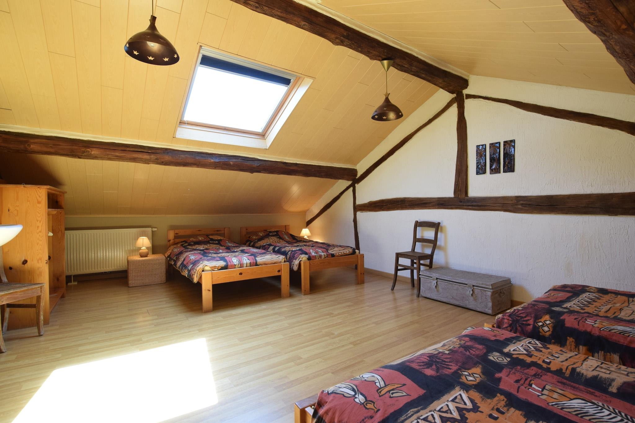 Am Rande des Dorfes Montleban in Gouvy bietet dieses authentische Bauernhaus mit 6 Schlafzimmern einen ruhigen Rückzugsort für bis zu 16 Gäste. Umgeben von Wald und Natur bietet das Haus eine große Terrasse, einen eingezäunten Garten, einen Grillplatz und eine finnische Sauna – ideal zum Entspannen nach einem Tag im Freien. Das vor über 250 Jahren aus Ardenner Eiche, Lehm und Stein erbaute Haus versprüht rustikalen Charme und bietet gleichzeitig modernen Komfort. Im Inneren erwarten Sie eine luxuriöse Küche, ein geräumiger Essbereich, ein Kamin und ein Freizeitbereich mit Tischfußball und Billard. Der Wald und das Dorfzentrum sind nur 500 m entfernt, Restaurants und Geschäfte erreichen Sie nach 5 km. Eine Kunstskipiste ist 6 km und ein Schwimmbad 8 km vom Anwesen entfernt. Der Flughafen Lüttich ist 61 km entfernt. Hinweis: Jugendgruppen und Partys sind nicht gestattet. Haustiere (max. 5) sind für 20 EURO pro Nacht willkommen. Zusätzliche Kosten für Nebenkosten und Reinigung fallen an.