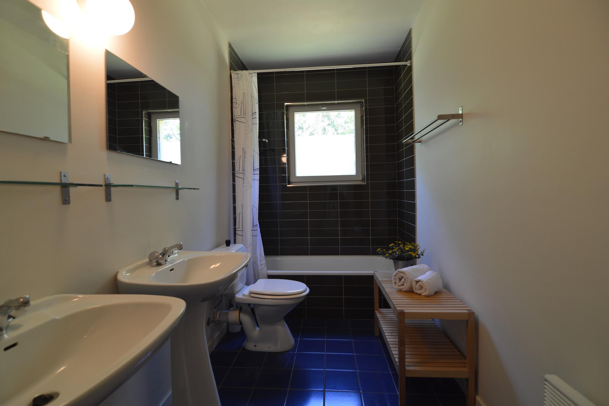 Parterre: (Eingang, Gemeinschaftsraum) In der 1. Etage: (Diele, Wohnzimmer(Herd(Holz), DVD-Spieler), offene Küche(Esstisch, Kochherd(4 Kochplatten, Ceranfeld), Backofen, Mikrowelle, Spülmaschine, Kühl-/Gefrierkombination), Schlafzimmer(2x Einzelbett(90 x 200 cm), 2x Einzelunterschiebebett(90 x 200 cm)), Schlafzimmer(Doppelbett oder 2 Einzelbetten), Badezimmer(Badewanne mit Dusche, 2x Waschbecken, Toilette), Balkon) TV(Flatscreen), streamingservice, Kaffeemaschine, Mikrowelle, Badewanne oder Dusche, Heizung, Heizung, Terrasse, Terrasse, Garten, Garten(Gemeinschaftliche Nutzung mit anderen Gästen, angelegt, teilweise umzäunt, 9000 m2), Gartenmöbel, Grill(Gemeinschaftliche Nutzung mit anderen Gästen), Parkplatz, Sandkasten, Spielgeräte, Tischtennisplatte, Tischtennisplatte, Hochstuhl, Gesellschaftsspiele