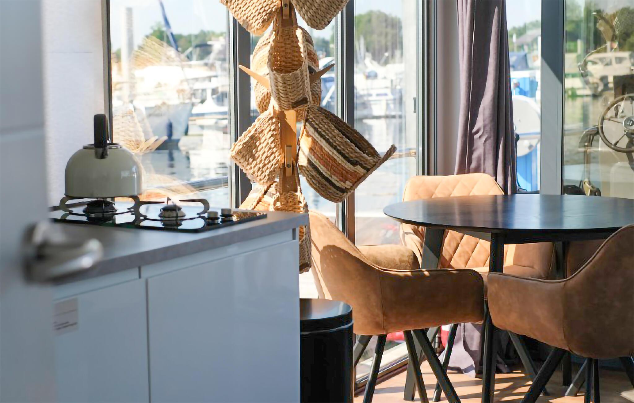 Genießen Sie mit Ihrer Familie dieses moderne und geschmackvolle Hausboot mit gemütlicher Terrasse.