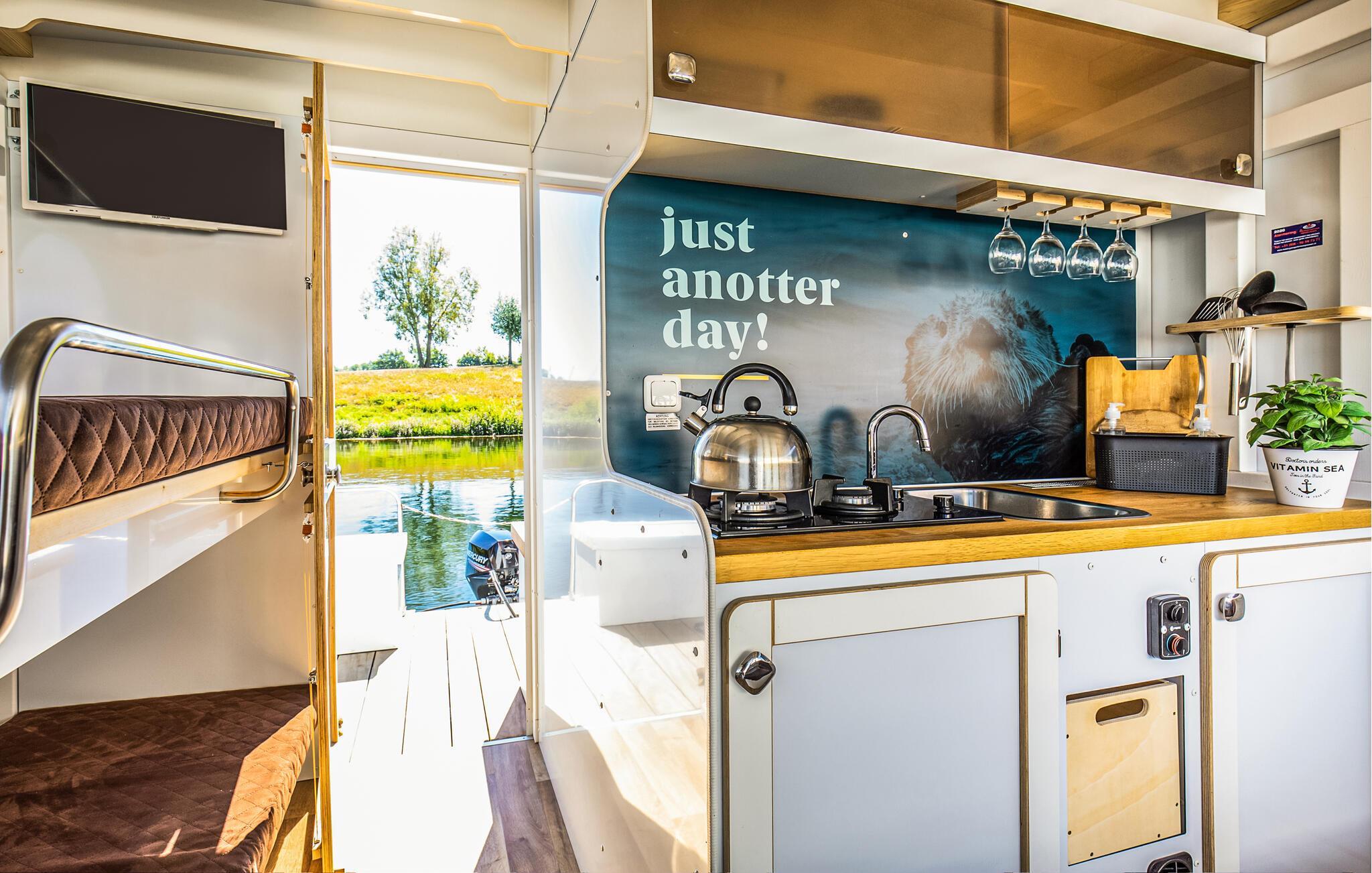 Willkommen in diesem schönen Hausboot, einem Urlaub, der Ihnen sicherlich lange in Erinnerung bleiben wird und Ihnen Erholung verspricht. Entdecken Sie angenehme Möblierung und das ansprechende Ambiente das sich in einem Raum mit Rundumblick aus das Wasser und den Hafen bietet. Hier finden Sie alles vor, was Sie zum Kochen, Essen, Spielen und Relaxen brauchen.