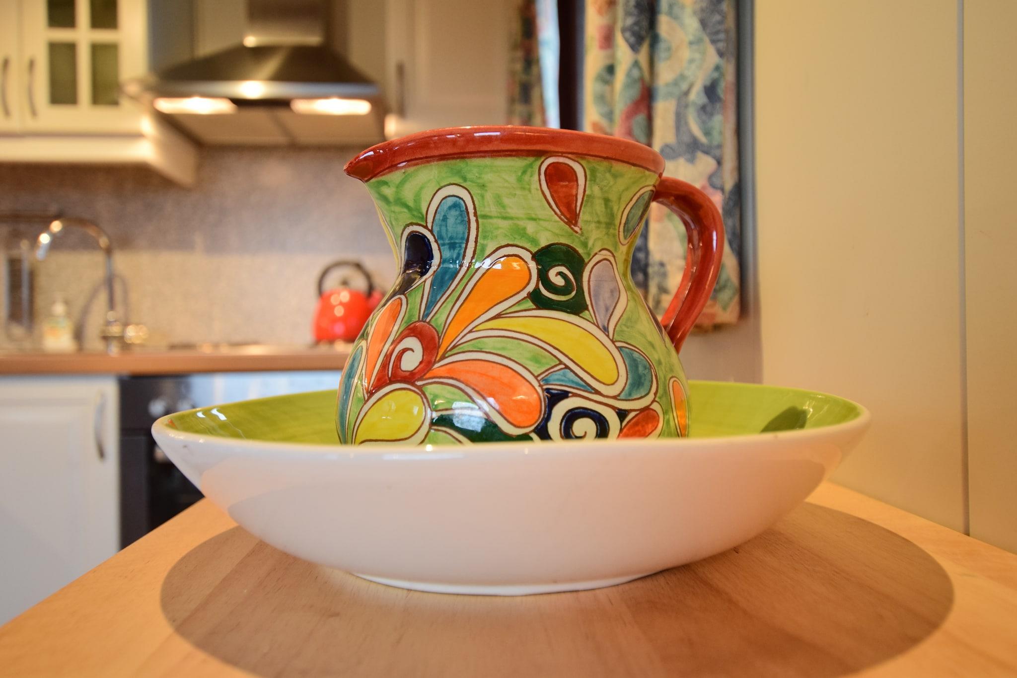 Parterre: (Schlafzimmer(Doppelschlafcouch(130 x 200 cm)), Schlafzimmer(Etagenbett(90 x 200 cm)), Abstellraum(Kühl-/Gefrierkombination, Fahrradabstellraum)) In der 1. Etage: (offene Küche(Wasserkocher, Kochherd(4 Kochplatten), Kaffeemaschine(Filter, pads), Backofen, Mikrowelle, Kühlschrank), Wohn/Esszimmer(Esstisch, Kaminofen, Sitzecke), Schlafzimmer(Doppelbett(160 x 200 cm)), Badezimmer(Badewanne mit Dusche, Waschbecken), Toilette) Heizung(elektrisch), Garten, Gartenmöbel, Grill, Parkplatz