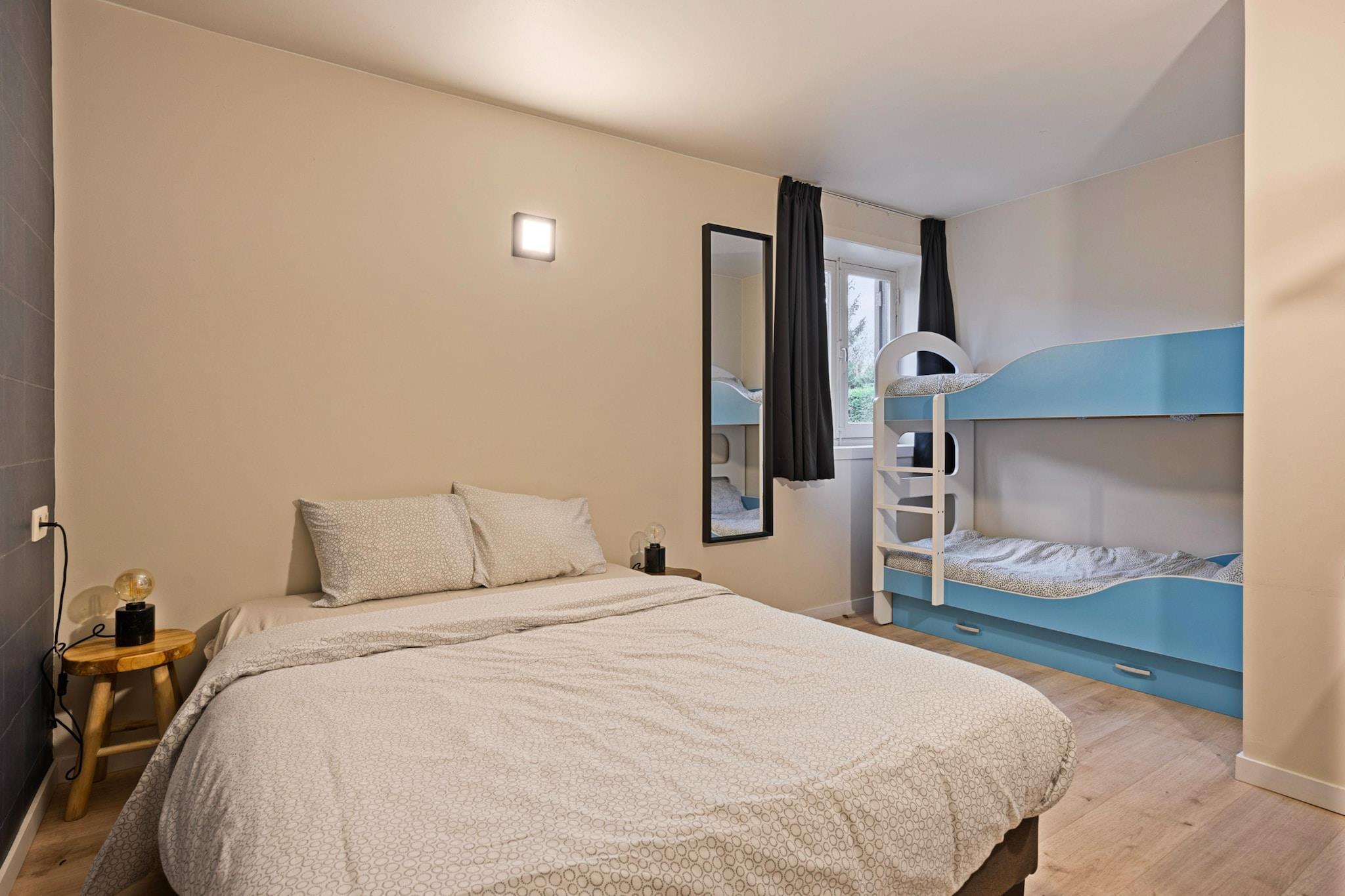 Diese geräumige Villa im ruhigen Dorf Manhay bietet Familien und Gruppen einen erholsamen Rückzugsort. Nur 2 km von Dochamps entfernt und umgeben von Wald, befindet sie sich in der Nähe von Top-Attraktionen wie dem Parc Chlorophylle, einem Naturpark, der sich perfekt für Kinder und Wanderer eignet, und der historischen Stadt La Roche-en-Ardenne, bekannt für ihre mittelalterliche Burg und ihren Charme am Flussufer. Abenteuerlustige finden im Adventure Valley Durbuy und im Parc Safari Monde Sauvage Aywaille Seilrutschen, Wildtiere und Outdoor-Spaß. Die Villa verfügt über sechs Schlafzimmer, davon drei mit eigenem Bad, und einen gemütlichen Wohn-/Essbereich mit Holzofen und Sitzgelegenheiten für zehn Personen. Die offene Küche ist komplett mit modernen Geräten ausgestattet, und der Ruhebereich umfasst eine Infrarotsauna. Den Gästen steht ein eingezäunter Garten mit großer Terrasse, Trampolin, Rutsche, Grill und Gesellschaftsspielen zur Verfügung. Zur weiteren Ausstattung gehören eine Waschmaschine, ein Wäschetrockner, ein Fahrradabstellraum und eine Ladestation für Elektroautos. Zu den nahegelegenen Speisemöglichkeiten zählen La Fourchette Paysanne für belgische Spezialitäten, das Restaurant Le Patton für französische Küche und Biotanique für gesunde europäische Gerichte.