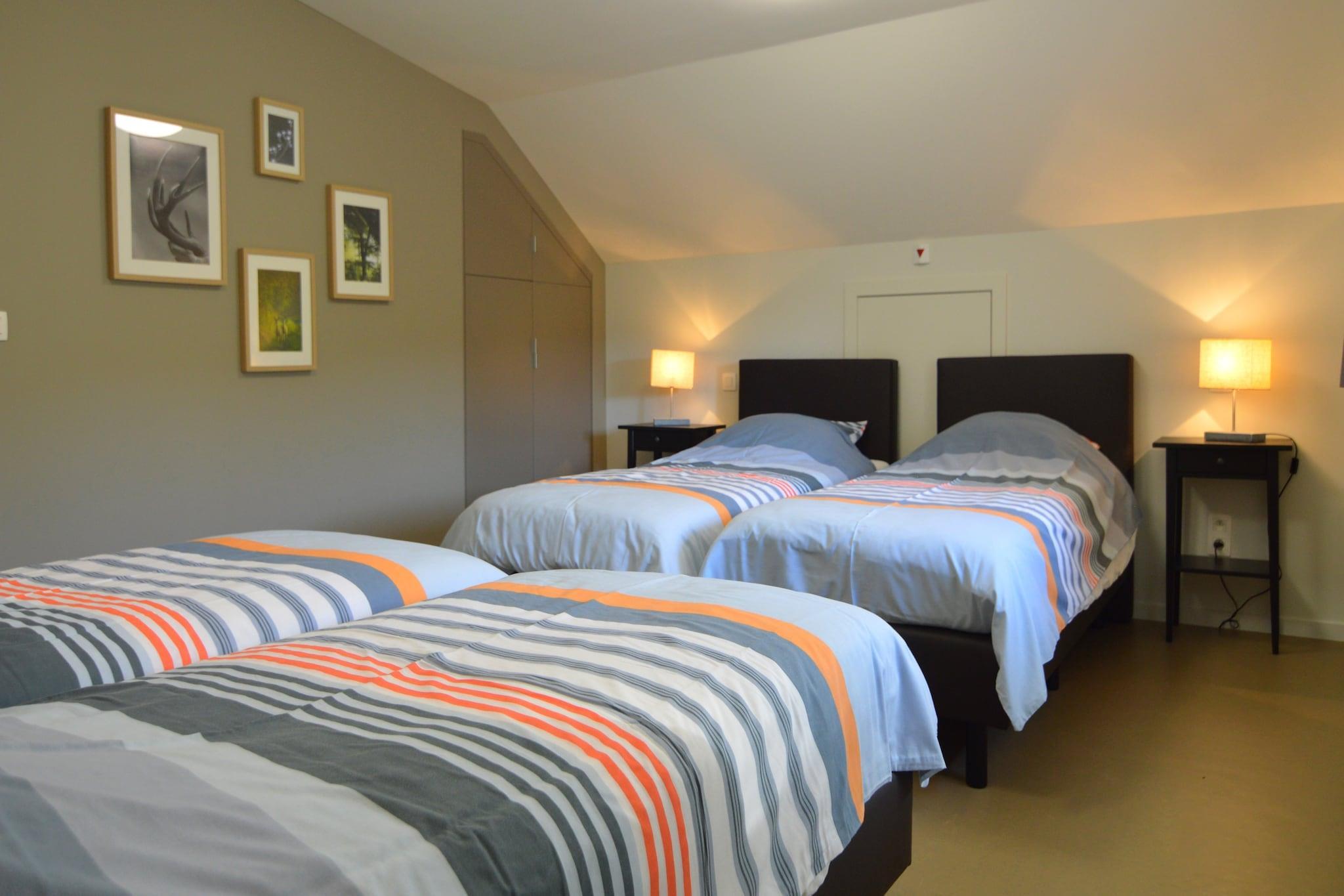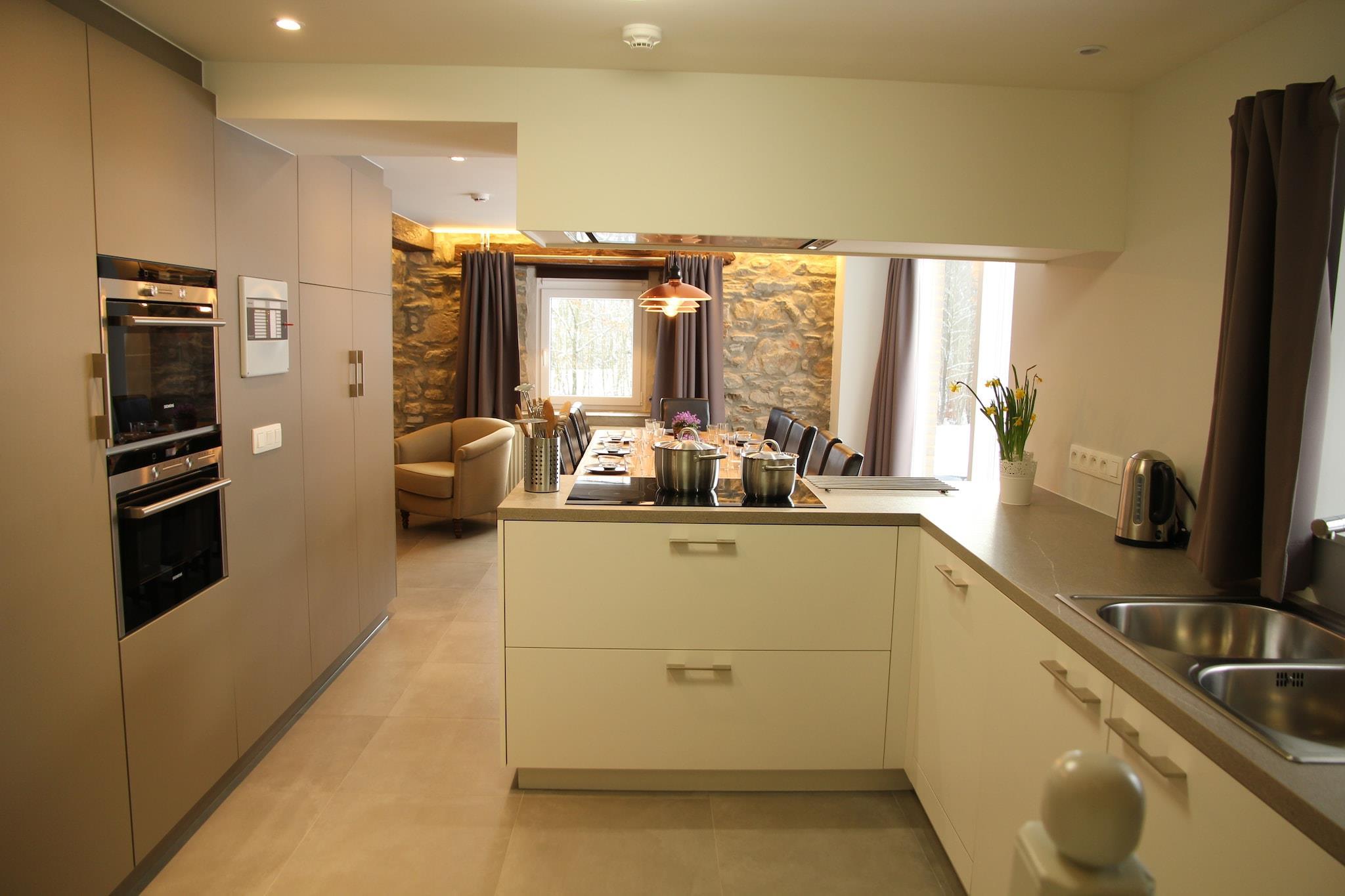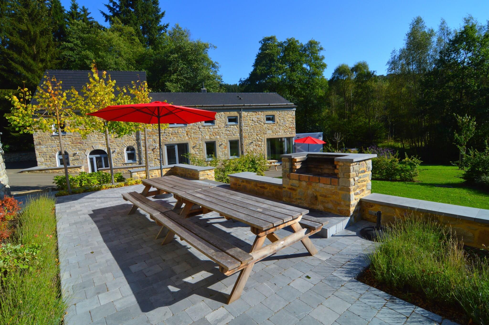 Dieses renovierte Haus Ondenval liegt auf einem großen Gelände von 4 Hektar in einem Tal in Ondenval in Belgien. Das Haus liegt ruhig inmitten der unangetasteten Natur und bietet eine wunderschöne Aussicht auf das Tal. Von der Terrasse aus blicken Sie ins Tal und auf die Wälder. Das Haus ist ein idealer Ausgangspunkt für Wanderungen, Radtouren oder Ausflüge. Die Wohnung ist modern und komfortabel eingerichtet. Es gibt eine offene Küche mit einem großen Esstisch und eine gemütliche Sitzecke. Die Schlafzimmer im Obergeschoss sind sehr geräumig und es gibt 4 Badezimmer. Ondenval ist ein kleines Dorf in den Ardennen, südlich der Gemeinde Waimes und am Rand des Hohen Venns. Auf dem Grundstück liegen zwei Häuser. Sie teilen sich auch den gleichen Parkplatz und sie können zusammen gebucht werden, dann steht Ihnen eine Unterkunft für 24 Personen zur Verfügung.