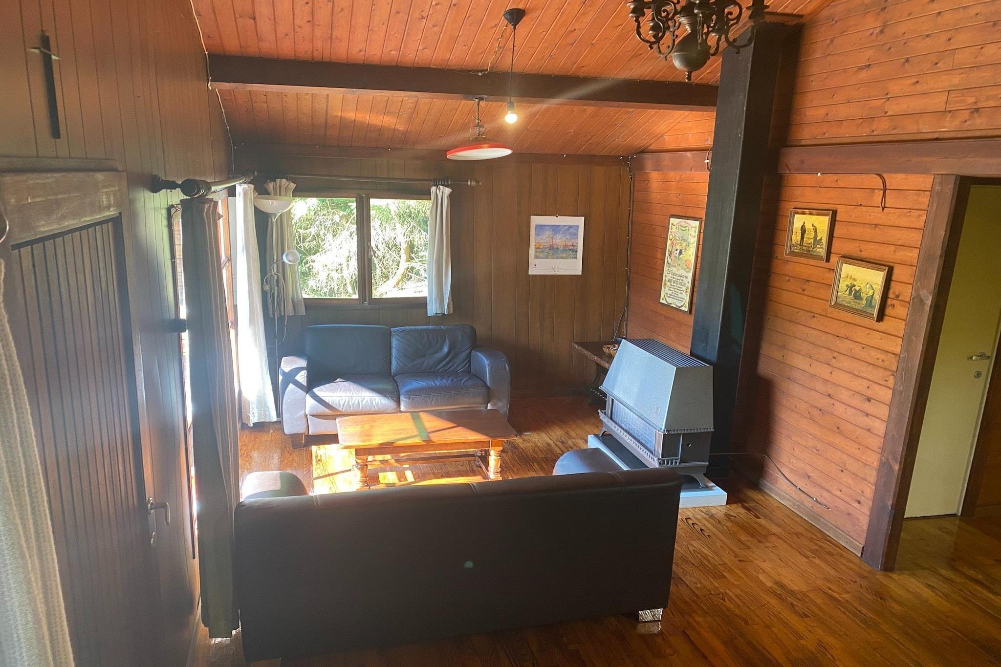 Parterre: (Wohnzimmer(Kaminofen, Sitzecke), Küche(Esstisch, Kochplatte, Kochplatte, Toaster, Kochherd(3 Kochplatten, Gas), Kochherd, Kaffeemaschine, Backofen, Mikrowelle, Kühlschrank, Kühlschrank), Schlafzimmer(Doppelbett), Schlafzimmer(Etagenbett), Badezimmer(Dusche, Waschbecken, Toilette)) Terrasse, Garten, Gartenmöbel, Parkplatz