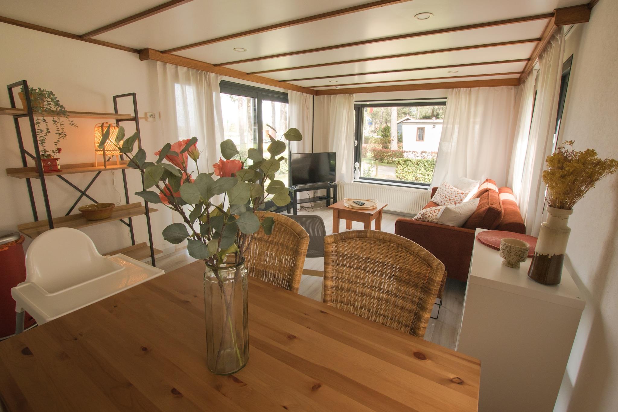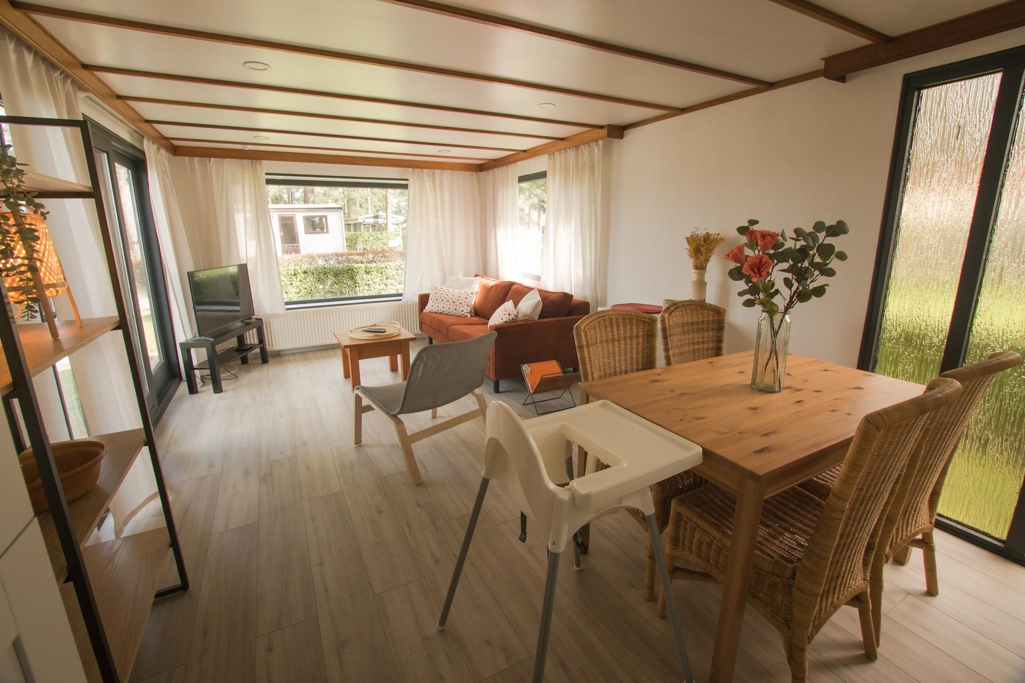 Verbringen Sie einen unvergesslichen Urlaub mitten im Park. Dieses charmante Mobilheim bietet einen einzigartigen Blick auf den Sandstrand, den Fußballplatz und die Minigolfanlage. Ideal für alle, die Camping-Nostalgie mit modernem Komfort verbinden möchten, lädt diese Unterkunft zum Sonnenbaden auf der privaten Terrasse ein. Die Lodge ist durchdacht gestaltet und bietet Platz für bis zu zwei Erwachsene und zwei Kinder – die perfekte Wahl für junge Familien, die eine zentrale und dennoch ruhige Unterkunft in Ravels suchen. Im Inneren erwartet Sie ein gemütliches Wohnzimmer mit Flachbildfernseher und eine offene Küche, die keine Wünsche offen lässt. Zur Ausstattung gehören Kochgeschirr, ein Gasherd, ein Kühl-/Gefrierschrank, eine Mikrowelle und eine Senseo-Kaffeemaschine – inklusive einiger Kaffeepads für den perfekten Start. Die Lodge verfügt über zwei komfortable Schlafzimmer, eines mit einem Doppelbett und eines mit zwei Einzelbetten, sodass die ganze Familie erholsamen Urlaub genießen kann. Mit eigenem Bad und effizienter Heizung für kühlere Abende bietet die Lodge zu jeder Jahreszeit ein sorgenfreies Ambiente. Der Außenbereich bietet einen privaten Gartentisch mit Stühlen, wo Sie entspannen und das bunte Treiben im Park beobachten können. Bitte beachten Sie, dass das Rauchen in dieser Unterkunft nicht gestattet ist. Kostenloses WLAN steht Ihnen zur Verfügung. Gäste haben vollen Zugang zu den erstklassigen Einrichtungen des Parks, darunter der Naturbadeteich, der Angelteich, die Minigolfanlage, der Spielplatz und verschiedene Sportplätze. Bitte beachten Sie jedoch, dass bei Ihrer Ankunft gegebenenfalls eine Kurtaxe oder zusätzliche Parkgebühren anfallen. Diese zentral gelegene Unterkunft bietet die perfekte Kombination aus Parkvergnügen und dem Komfort eines privaten Ferienhauses.