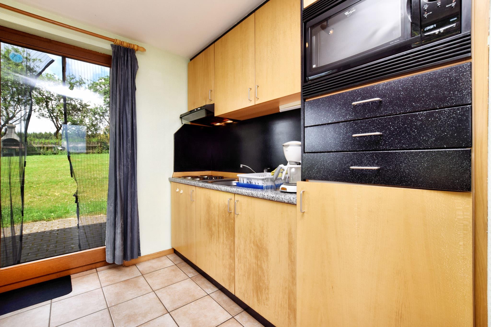 Parterre: (offene Küche(Kochherd(4 Kochplatten), Kaffeemaschine, Kombi-Mikrowelle, Kühlschrank(+ Gefrierfach)), Wohn/Esszimmer(TV), Toilette) In der 1. Etage: (Schlafzimmer(Etagenbett), Schlafzimmer(Doppelbett), Badezimmer(Dusche, Waschbecken)) Heizung(Zentral), Terrasse, Garten(Gemeinschaftliche Nutzung mit dem Eigentümer und anderen Gästen ), Gartenmöbel, Spielgeräte(Gemeinschaftliche Nutzung mit anderen Gästen)