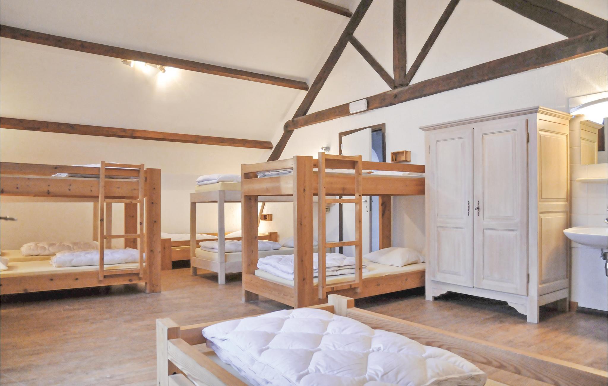 Offener Schlafboden - 2 Schlafmöglichkeiten. (Einzelbett(en)). 9 Schlafmöglichkeiten. (Etagenbett). 1 Schlafmöglichkeit. (Schlafsofa,Matratze,Sonstiges).