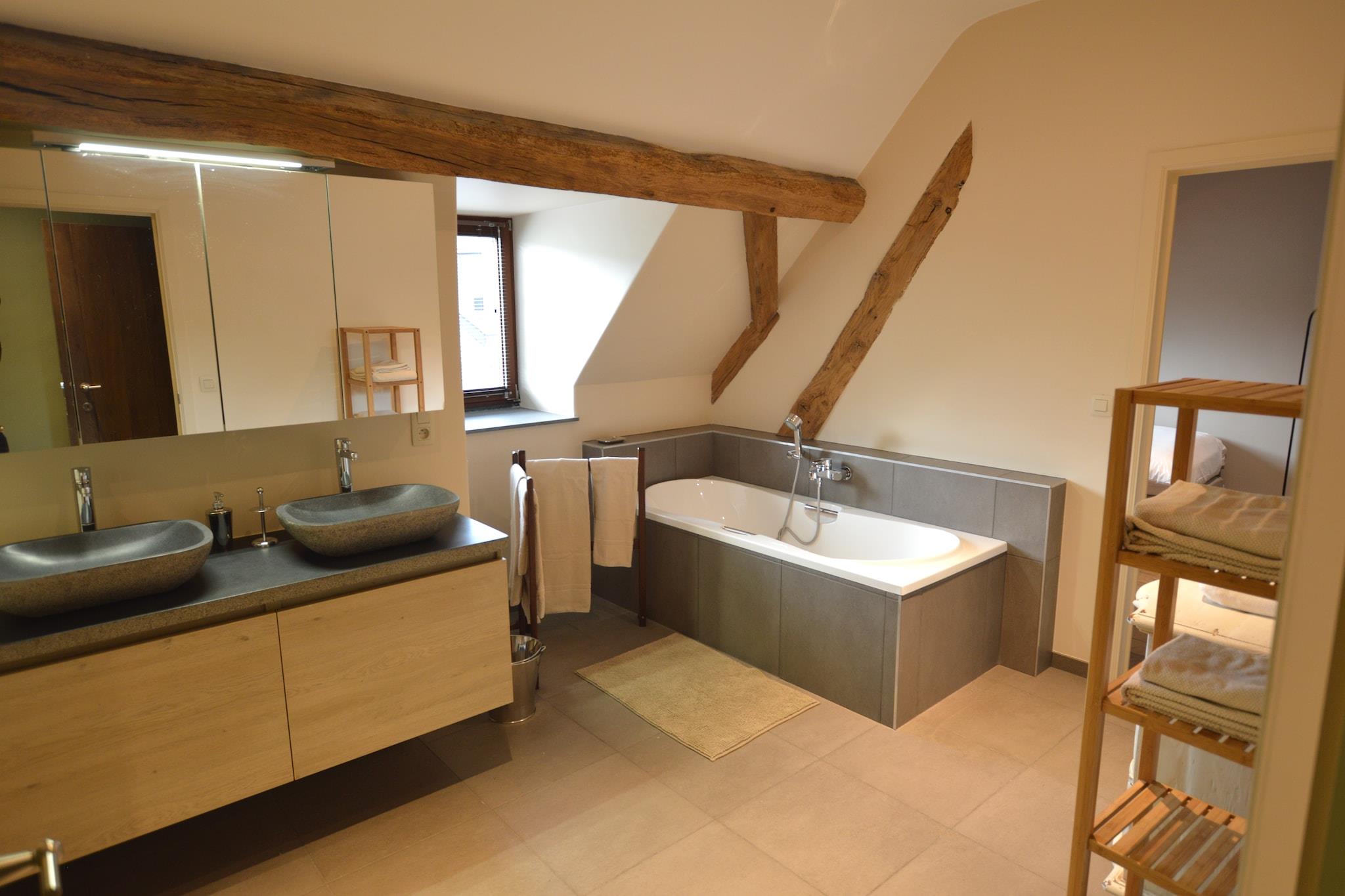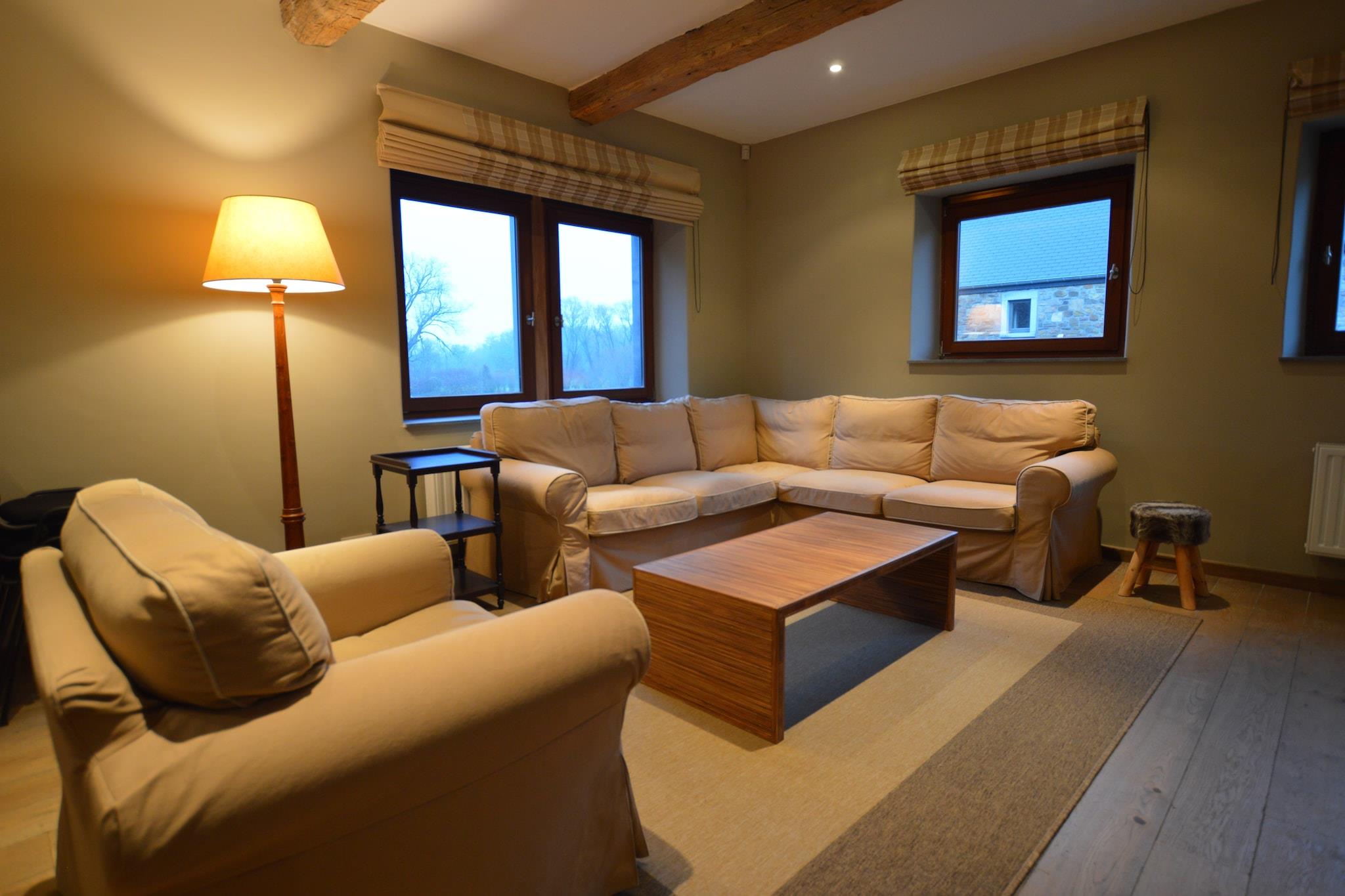 Am Ende einer Sackgasse, umgeben von bewaldeten Hügeln und Weiden, heisst die "Moulin-de-Vaulx" Sie für einen Urlaub mit der Familie oder mit Freunden willkommen, ist aber auch für Incentives, Seminare, Teambuilding... geeignet. Dieser alte Bauernhof, der bis ins Detail renoviert wurde, garantiert einen besonderen Urlaub. Sie finden hier Ruhe, Platz und Komfort in einer warmen Atmosphäre mit charmanter Einrichtung. Jung und Alt werden den Billardtisch in der Eingangshalle und genießen. Die Gite ist von einem großen Garten, der an einen kleinen Fluss grenzt, umgeben. Es gibt verschiedene Terrassen, sodass Sie den ganzen Tag die Sonne genießen können. Es gibt auch ein großes Angebot an sportlichen Aktivitäten und Sehenswürdigkeiten in der wunderschönen Umgebung des Vallée de la Molignée. Und für Liebhaber von Motorrädern und Autos befindet die Rennstrecke von Mettet nur wenige Kilometer entfernt. Die Moulin-de-Vaulx besteht aus zwei Einheiten: einem großen Haus und einem kleineren Häuschen. Ihnen steht hier die ganze Gite zur Verfügung: das große und das keine Haus und Sie sind immer der einzige Bewohner der Gite.