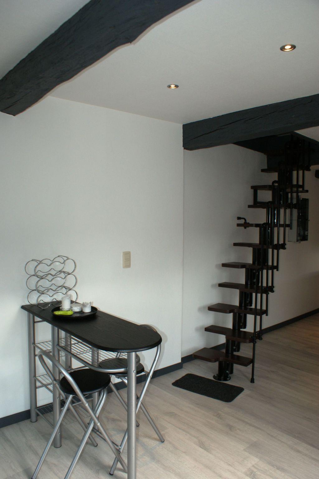 Treppe in die Wohnung und japanische Treppe zu den Schlafzimmern.