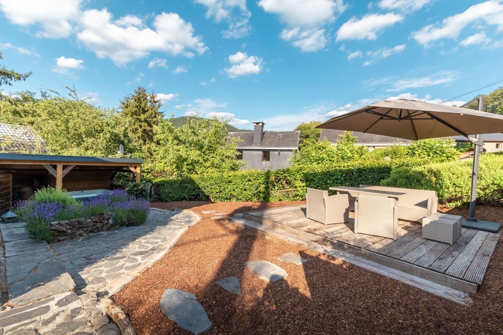 Dieses bezaubernde Fachwerkhaus verkörpert den typischen Charme des Ardennen-Stils und liegt eingebettet im malerischen Dorf Coo, das für seine atemberaubenden Wasserfälle bekannt ist. Perfekt geeignet für Familien oder kleine Gruppen, bietet dieses reizvolle Refugium Platz für 4 bis 6 Gäste und einen ruhigen Rückzugsort inmitten der Natur. Der Außenbereich des Anwesens bietet eine möblierte Terrasse, die sich ideal für Mahlzeiten im Freien und einen Grillplatz eignet. Ein überdachter und beheizter Whirlpool ist ganzjährig geöffnet und sorgt für Entspannung zu jeder Jahreszeit. Im Erdgeschoss empfängt die Gäste eine einladende Eingangshalle, die zu einem Weinkeller (derzeit leer), einer Waschküche mit Waschmaschine und einem praktischen WC führt. Die gut ausgestattete Küche verfügt über alle wichtigen Geräte, darunter Backofen, Gasherd, Kühlschrank, Geschirrspüler und Mikrowelle, und bietet einfachen Zugang zum Garten. Das gemütliche Esszimmer mit Holzofen schafft eine warme Atmosphäre für gemeinsame Mahlzeiten, während das komfortable Wohnzimmer mit Fernseher nach einem erlebnisreichen Tag zum Entspannen einlädt. Im ersten Stock befinden sich zwei geräumige Schlafzimmer. Das erste Schlafzimmer verfügt über ein 160 x 200 cm großes Doppelbett und ein eigenes Badezimmer mit Badewanne, WC und Waschbecken. Das zweite Schlafzimmer bietet ebenfalls ein 160 x 200 cm großes Doppelbett und wird durch ein charmantes Zwischengeschoss mit einem weiteren Doppelbett und einem Ankleidezimmer sowie einem eigenen Badezimmer mit italienischer Dusche ergänzt. Dusche. Günstig gelegen in der Nähe der berühmten Coo-Wasserfälle, eines Sportzentrums, eines Vergnügungsparks, eines Tierparks, kleiner Restaurants und der renommierten Rennstrecke Spa-Francorchamps bietet dieses charmante Haus eine perfekte Mischung aus Ruhe und Abenteuer und ist somit ein idealer Zufluchtsort im Herzen der Ardennen.