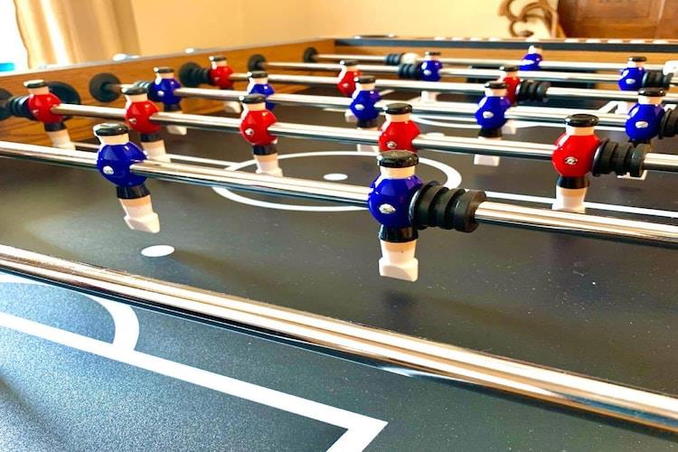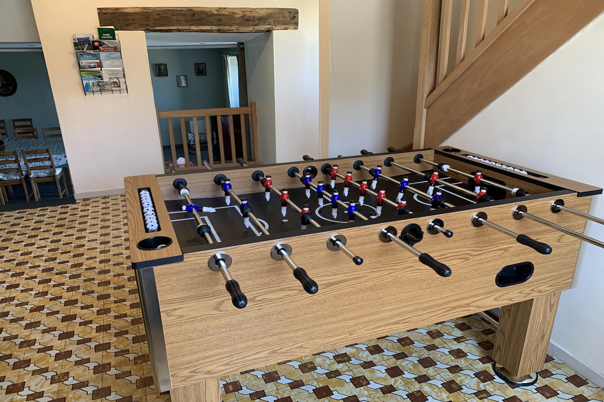 Parterre: (Eingangshalle, Wohnzimmer(TV, Herd(Holz)), Esszimmer, offene Küche(2x Kochherd, 2x Kaffeemaschine, 2x Backofen, Mikrowelle, 2x Spülmaschine, 2x Kühl-/Gefrierkombination), Schlafzimmer mit Badezimmer(2x Einzelbett(80 x 200 cm), Dusche(angepasst für Behinderte), Waschbecken, Toilette), Toilette) In der 1. Etage: (Eingangshalle, Schlafzimmer mit Badezimmer(2x Einzelbett(80 x 200 cm), Dusche, Waschbecken, Toilette), Schlafzimmer mit Badezimmer(2x Einzelbett(80 x 200 cm), Dusche, Waschbecken), Schlafzimmer mit Badezimmer(über steile Treppe)(4x Einzelbett(80 x 200 cm), Dusche, Waschbecken), Toilette, Waschraum(Trockner, Waschmaschine)) In der 2. Etage: (Schlafzimmer mit Badezimmer(2x Einzelbett(90 x 200 cm), Badewanne, Waschbecken, Toilette), Schlafzimmer mit Badezimmer(2x Einzelbett(80 x 200 cm), Dusche, Waschbecken, Toilette)) Kaminofen, Heizung, Terrasse(überdacht, 90 m2), Garten, Fahrradabstellraum, Gartenmöbel, Grill, Parkplatz, Liegestühle, Tischtennisplatte, Tischfußball, Kinderbett, Bügelbrett, Gesellschaftsspiele