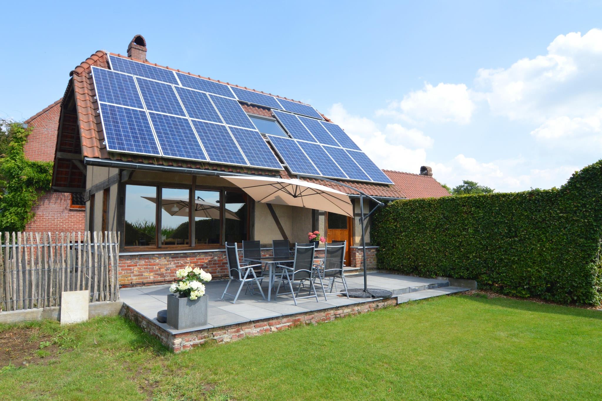 Dieses komfortable Ferienhaus in Vloesberg (Flobecq) im Hennegau bietet Platz für bis zu 5 Personen und ist ideal für Familien, die Entspannung und Komfort suchen. Das Erdgeschoss umfasst einen Flur, ein gemütliches Wohnzimmer mit Sat-TV, DVD-Player und Stereoanlage sowie eine offene Küche mit 4-Platten-Cerankochfeld, Filterkaffeemaschine, Kombi-Mikrowelle, Geschirrspüler und Kühlschrank. Ein Badezimmer mit Dusche, Waschbecken und WC rundet die Etage ab. Im Obergeschoss befinden sich zwei Schlafzimmer: eines mit zwei Einzelbetten und eines mit drei Einzelbetten - für flexible Schlafmöglichkeiten. Das Haus verfügt über Zentralheizung, eine private Sauna und Zugang zu einer gemeinschaftlich genutzten Infrarotsauna für ein Wellness-Erlebnis. Genießen Sie die private Terrasse und den Garten mit Sitzgelegenheiten und Grill. Zu den weiteren Annehmlichkeiten gehören ein Parkplatz, ein Kinderbett, ein Hochstuhl und kostenloses WLAN. Nur 5 km vom Zentrum entfernt und in der Nähe von Wäldern, Restaurants und Einkaufsmöglichkeiten gelegen, vereint dieses Haus Ruhe und Erreichbarkeit.