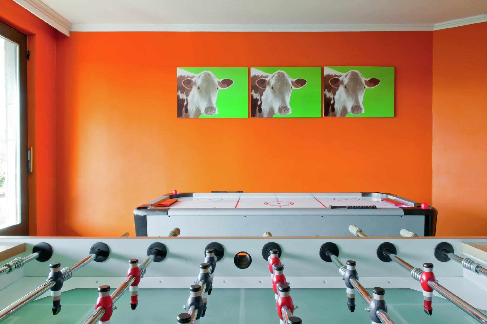 Parterre: (Eingangshalle, Aufenthaltsraum(TV, Kaminofen), Aufenthaltsraum(Kaminofen), Esszimmer, Küche(Kochplatte(4 Kochplatten, Induktion), Kochplatte(Induktion), Kaffeemaschine, 2x Backofen, Mikrowelle, Spülmaschine, Spülmaschine, 2x Kühl-/Gefrierkombination), Toilette, Toilette, Toilette, Toilette, Spielzimmer(Billard), Saal(TV, DVD-Spieler, Sitzungen(20 Personen sitzend), Flip-Chart(auf Anfrage))) In der 1. Etage: (Schlafzimmer mit Badezimmer(2x Einzelbett, Dusche, Waschbecken, Toilette), Schlafzimmer mit Badezimmer(2x Etagenbett für 3 Personen, Dusche, Waschbecken, Toilette), Schlafzimmer mit Badezimmer(Doppelbett, Etagenbett, Badewanne oder Dusche, Waschbecken, Toilette), Schlafzimmer mit Badezimmer(Doppelbett, Etagenbett, Badewanne oder Dusche, Waschbecken, Toilette), Schlafzimmer mit Badezimmer(2x Einzelbett, Badewanne, Dusche, Waschbecken, Toilette), Schlafzimmer mit Badezimmer(2x Einzelbett, Dusche, Waschbecken, Toilette), Spielzimmer(Tischfußball, Air-Hockey), Ruheraum(Dusche, Infrarotsauna), Ruheraum(Dusche, Infrarotsauna, Fitnessgeräte)) In der 2. Etage: (Schlafzimmer mit Badezimmer(2x Einzelbett, Dusche, Waschbecken, Toilette), Schlafzimmer mit Badezimmer(2x Einzelbett, Dusche, Waschbecken, Toilette), Schlafzimmer mit Badezimmer(2x Einzelbett, Dusche, Waschbecken, Toilette), Schlafzimmer mit Badezimmer(2x Einzelbett, Dusche, Waschbecken, Toilette), Schlafzimmer mit Badezimmer(2x Einzelbett, Dusche, Waschbecken, Toilette), Schlafzimmer mit Badezimmer(2x Einzelbett, Badewanne mit Dusche, Waschbecken, Toilette), Schlafzimmer mit Badezimmer(2x Einzelbett, Badewanne mit Dusche, Waschbecken, Toilette), Schlafzimmer mit Badezimmer(2x Einzelbett, Badewanne mit Dusche, Waschbecken, Toilette), Schlafzimmer mit Badezimmer(Doppelbett, Badewanne mit Dusche, Waschbecken, Toilette), Schlafzimmer mit Badezimmer(Doppelbett, Badewanne mit Dusche, Waschbecken, Toilette), Schlafzimmer mit Badezimmer(Etagenbett, Dusche, Waschbecken, Toilette)) Poolhouse: (Whirlwanne, Dusche, Toilette, Liegestühle, Pool(alleinige Nutzung, erwärmt, innen, 9 x 4 m.)) Garage(von außen erreichbar), Trockner, Waschmaschine, Heizung(Zentral), Terrasse(überdacht), Garten(alleinige Nutzung, umzäunt, 4000 m2), Gartenmöbel, Grill, Parkplatz, Trampolin(alleinige Nutzung), Boulebahn, Spielgeräte, Tischtennisplatte, Kinderbett, Kinderbett, Hochstuhl, Hochstuhl, Hochstuhl