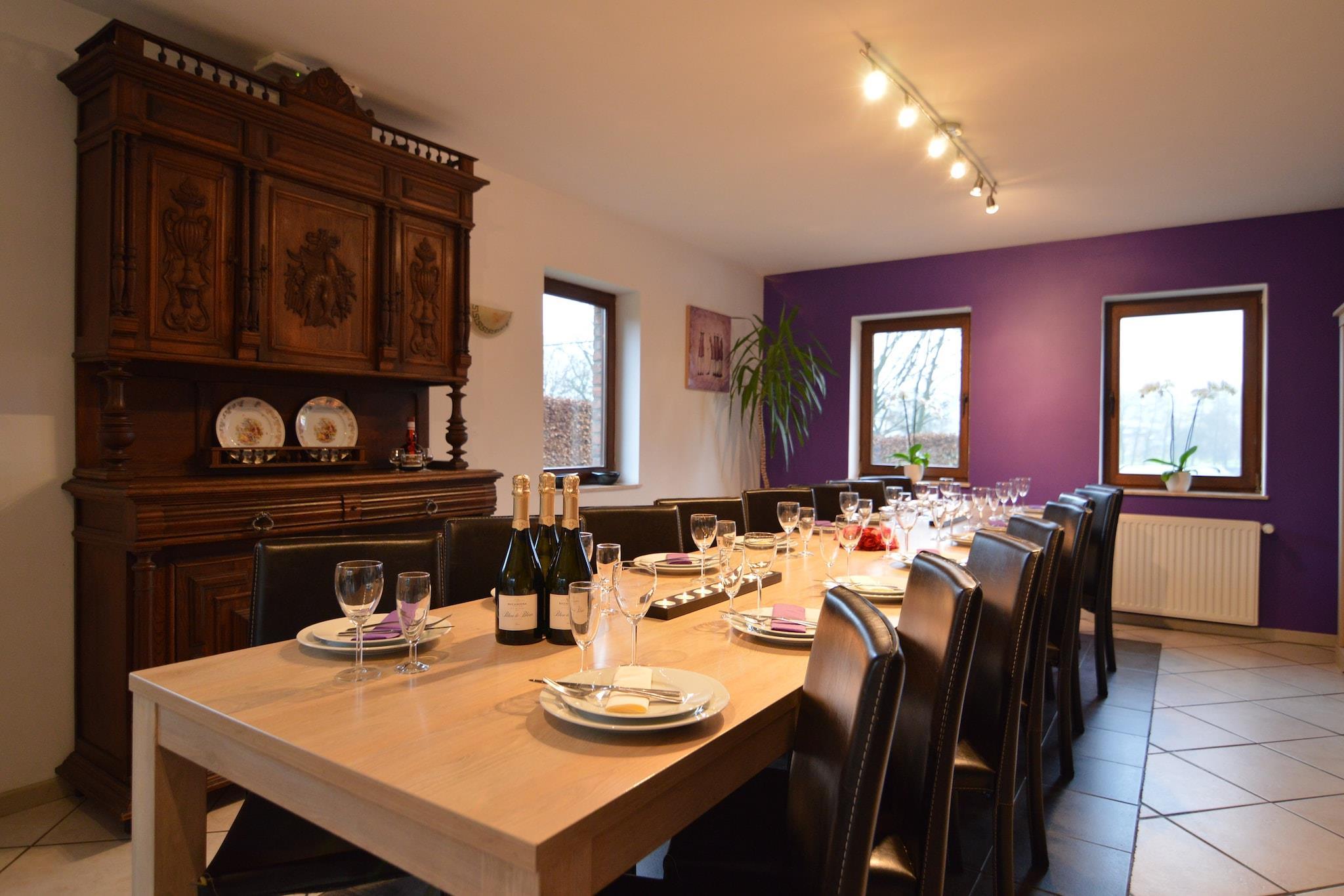 Dieses nicht weit von Malmédy und Waimes entfernte Ferienhaus mit Schwimmbad besteht aus zwei getrennten Wohnungen: einerseits einem großen Haus mit Sauna, Babyfootball, Sporthalle, 5 Schlafzimmern und 2 Badezimmern und andererseits einer Wohnung mit Billard, Flipper, zwei Schlafzimmern und einem Duschraum. Zum Ferienhaus gehört auch ein Garten mit Schwimmbad und eine Grillterrasse, wo Sie angenehme, schöne Sommerabende verbringen können. In der Region sind vielerlei Aktivitäten möglich: Besichtigung von Stavelot mit seinem Kloster, Malmédy mit seiner Kathedrale, Rennbahn in Francorchamps, Wanderungen, Radtouren, Reiten, Angeln, Tennis, Ski usw.