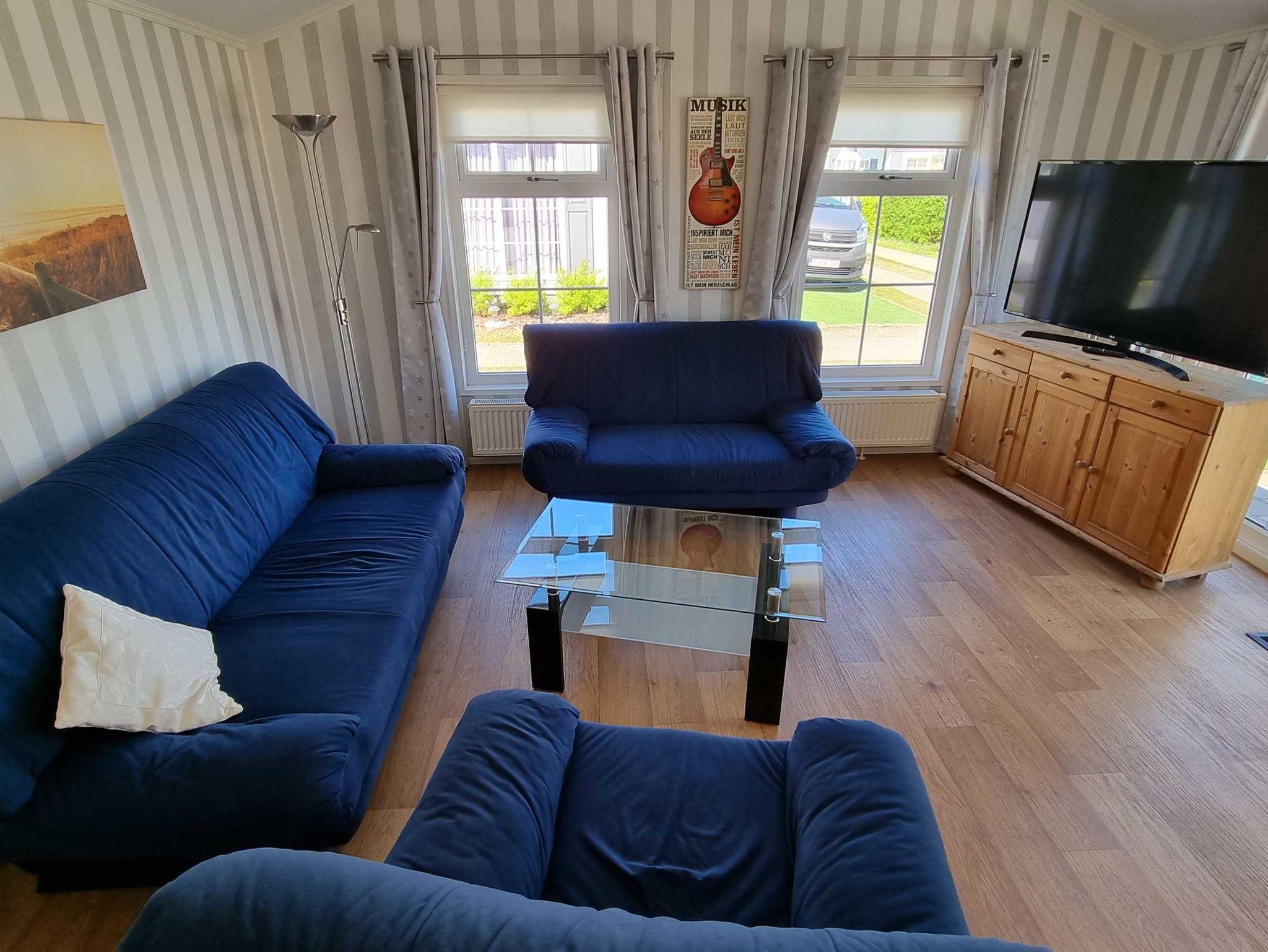 Es verfügt über 2 Schlafzimmer mit TV (1 Doppel- und 2 Einzelbetten) und bietet somit Platz für 4 Personen. Eine vollständig eingerichtete Küche mit Mikrowelle/Ofen sowie ein schöner Wohn- und Essbereich und ein Bad mit Dusche komplettieren das kleine Schmuckstück auf ca. 50 m².