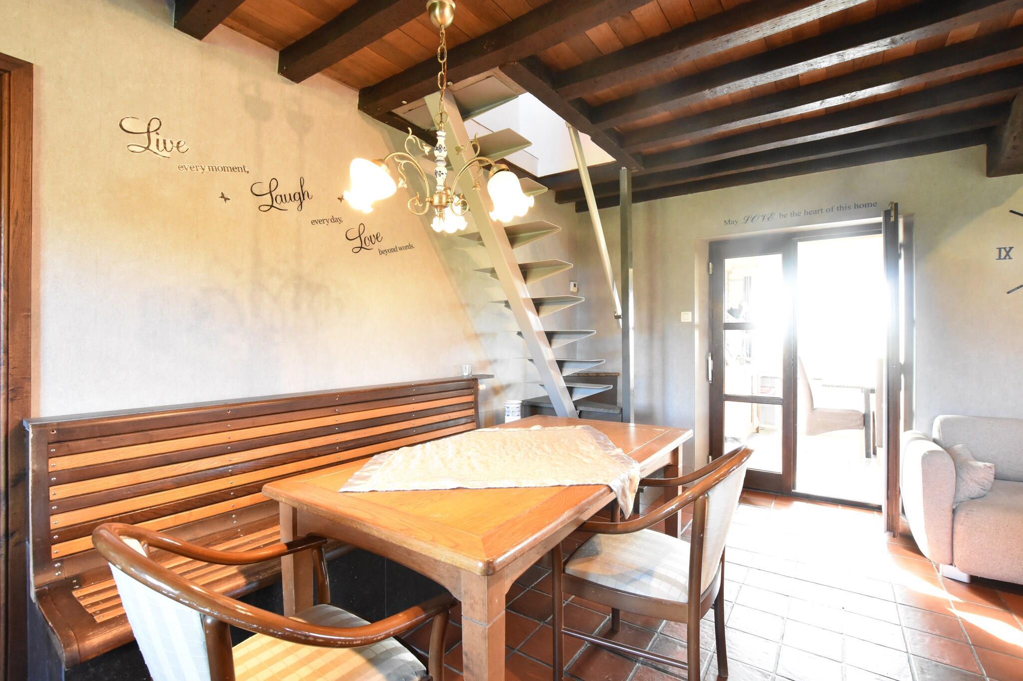 Ground floor: (hallway, Living room(stove(wood), stereo unit), open kitchen(oven, microwave, dishwasher), bedroom(double bed), bathroom(shower, washbasin), toilet, pantry(tumble dryer)) On the 1st floor: (bedroom(2x single bed, double bed), bedroom(2x single bed, bunk bed)) TV, Netflix, coffee machine, microwave, dishwasher, bathtub or shower, shower, washing machine, heating(electric), terrace, garden, bicycle storage, garden furniture, BBQ, pond, parasol, children's bed