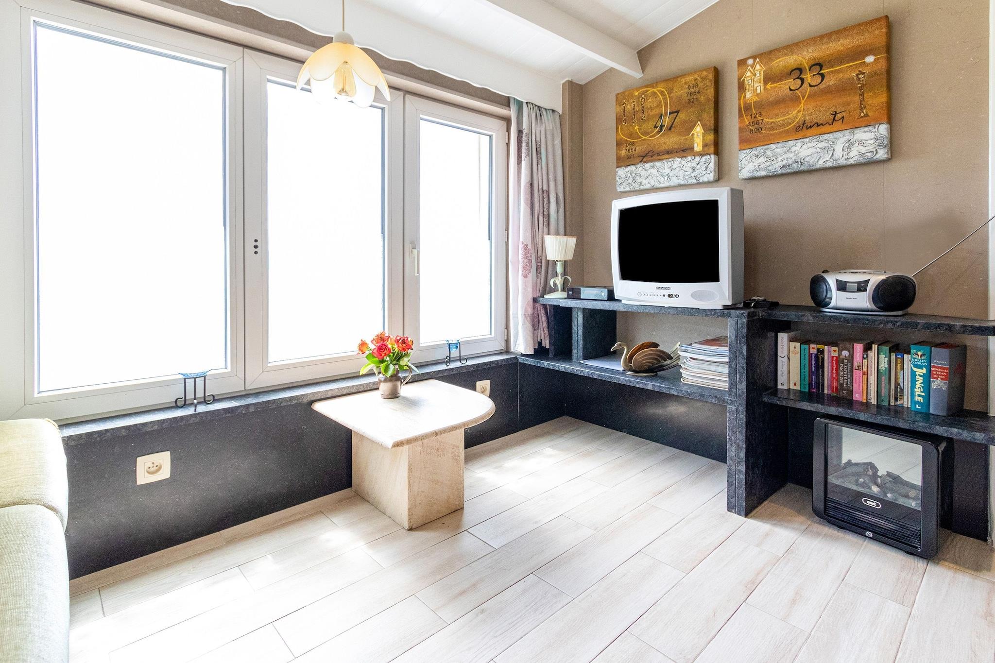 Dieses gemütliche, komfortable Chalet liegt im schönsten Teil der Westhoek in knapp einem Kilometer Entfernung vom Blumendorf Westouter. Vom Haus aus haben Sie eine herrliche Aussicht über die leicht hügelige westflämische Landschaft. Zum Haus gehört auch ein großer Garten mit einem Teich, hier können Sie wunderbar grillen. Besuchen Sie unbedingt auch die historischen Städte Ieper (12 km), Veurne (30 km) und Kortrijk (45 km). Die Gegend eignet sich hervorragend für Urlauber, die Ruhe suchen, wandern oder Fahrradtouren machen möchten. Das Haus kann eventuell zusammen mit BE-8954-01 für maximal 11 Personen gemietet werden. Unabhängig davon, was auf Ihrem Aufenthaltsticket steht: die Ankunft muss immer zwischen 18.00 und 20.00 Uhr liegen, und die Abfahrt erfolgt um 14.00 Uhr. Das gilt in allen Zeiträumen!