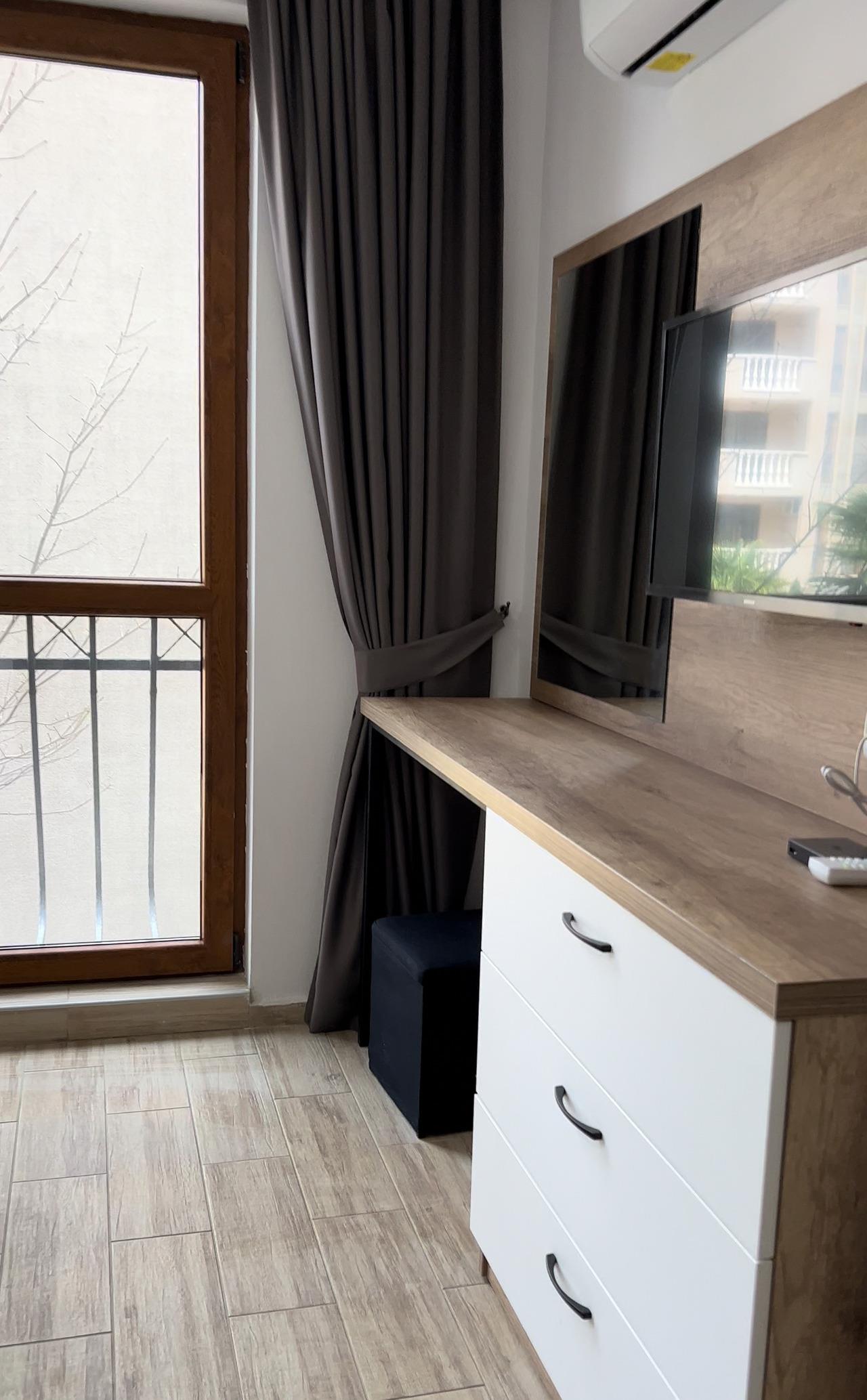 Es handelt sich um eine Deluxe Voll möblierte Ferienwohnung, die sich in einer sehr gepflegten Gegend befindet. 500 m vom Strand entfernt. Einkaufsmöglichkeiten, Restaurants und Ärzte in unmittelbarer Nähe. Flughafen Bourgas-30 km, Flughafen Varna-90 km entfernt.