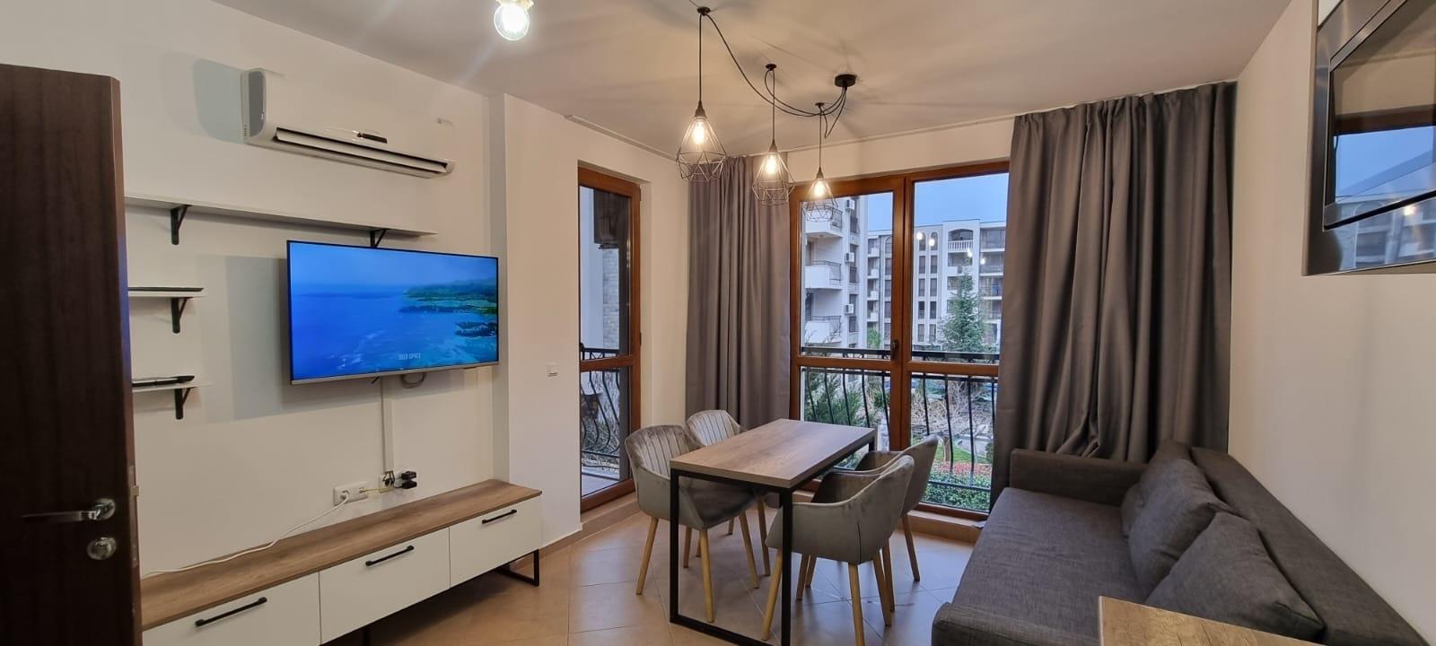 Es handelt sich um eine Deluxe Voll möblierte Ferienwohnung, die sich in einer sehr gepflegten Gegend befindet. 500 m vom Strand entfernt. Einkaufsmöglichkeiten, Restaurants und Ärzte in unmittelbarer Nähe. Flughafen Bourgas-30 km, Flughafen Varna-90 km entfernt.