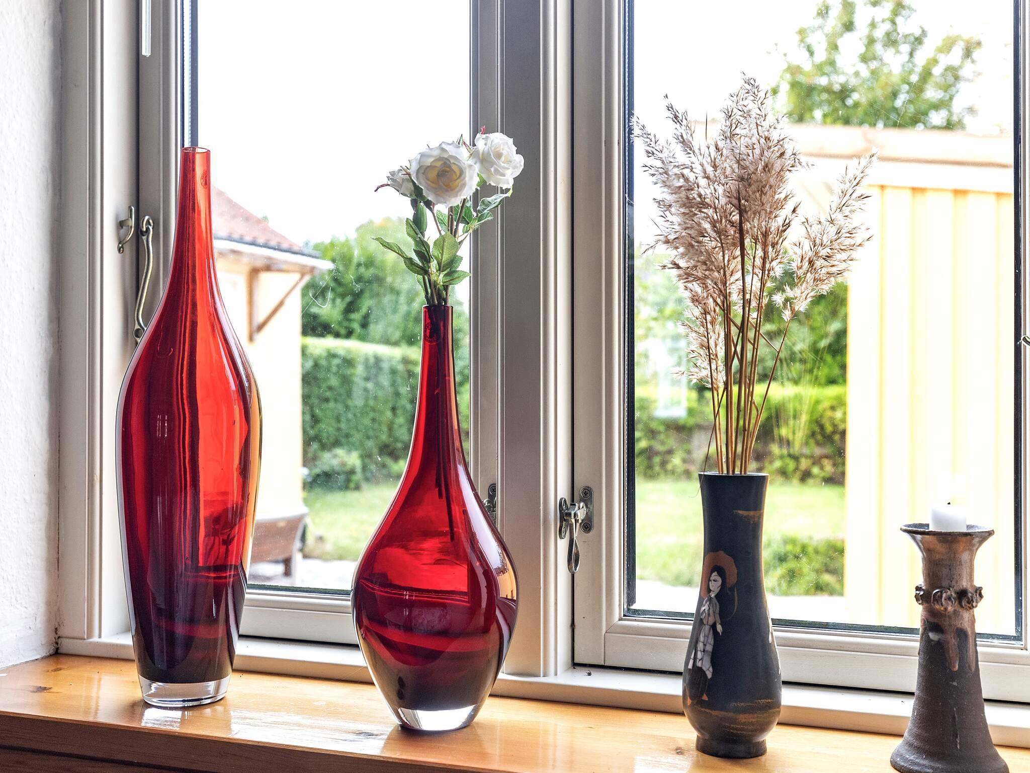 Die Schlafräume verteilen sich auf zwei Etagen. Im Erdgeschoss befindet sich ein Schlafzimmer mit einem Einzelbett. Im Obergeschoss erwarten Sie zwei weitere Schlafzimmer; eines mit zwei Einzelbetten, das andere mit drei Einzelbetten. Insgesamt bietet das Haus Platz für max. sechs Gäste. Ein Kinderbett ist ebenfalls vorhanden. Das Badezimmer ist mit WC, Waschbecken und Dusche ausgestattet. Die gemütliche und einladende Einrichtung sorgt dafür, dass Sie sich wohlfühlen.