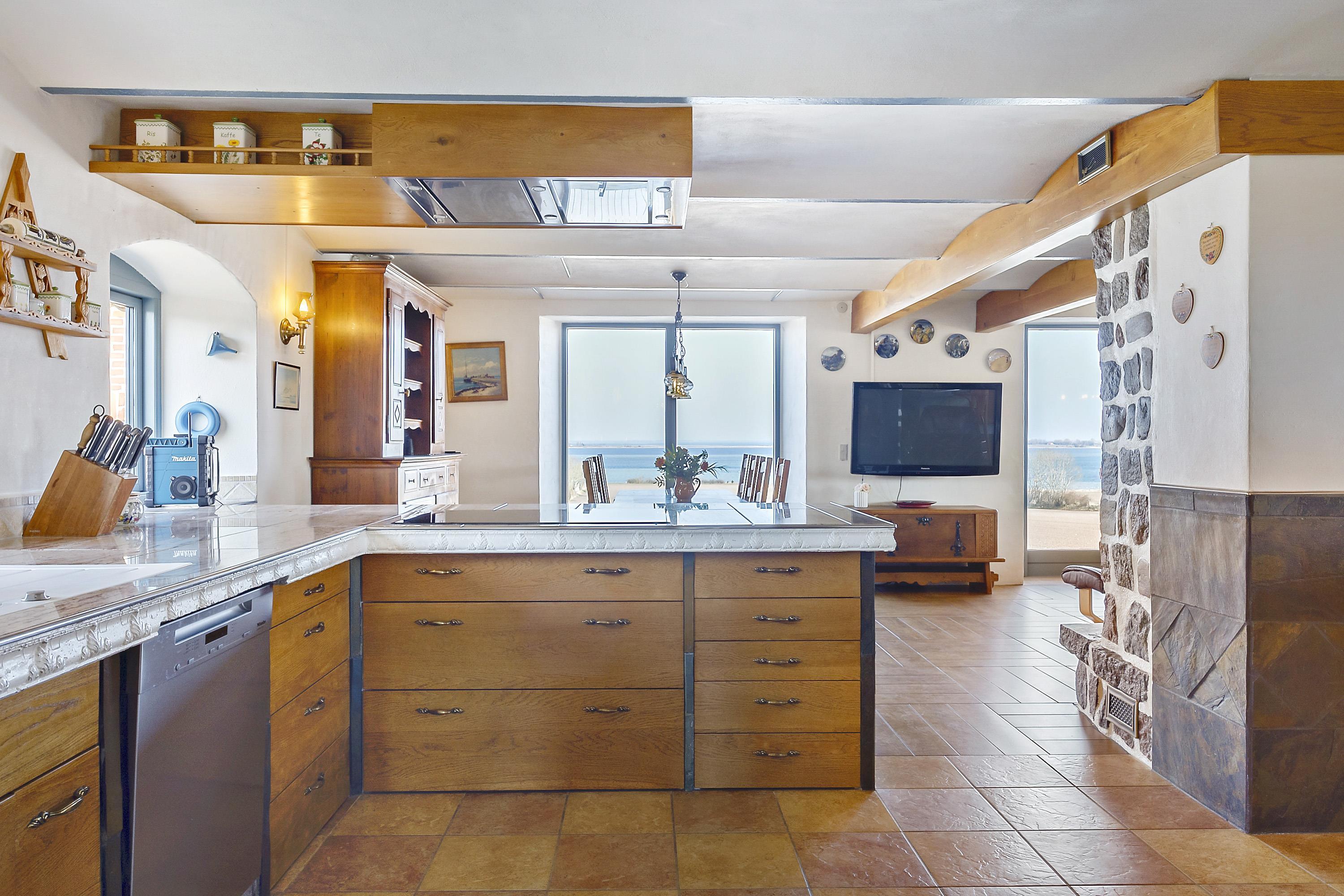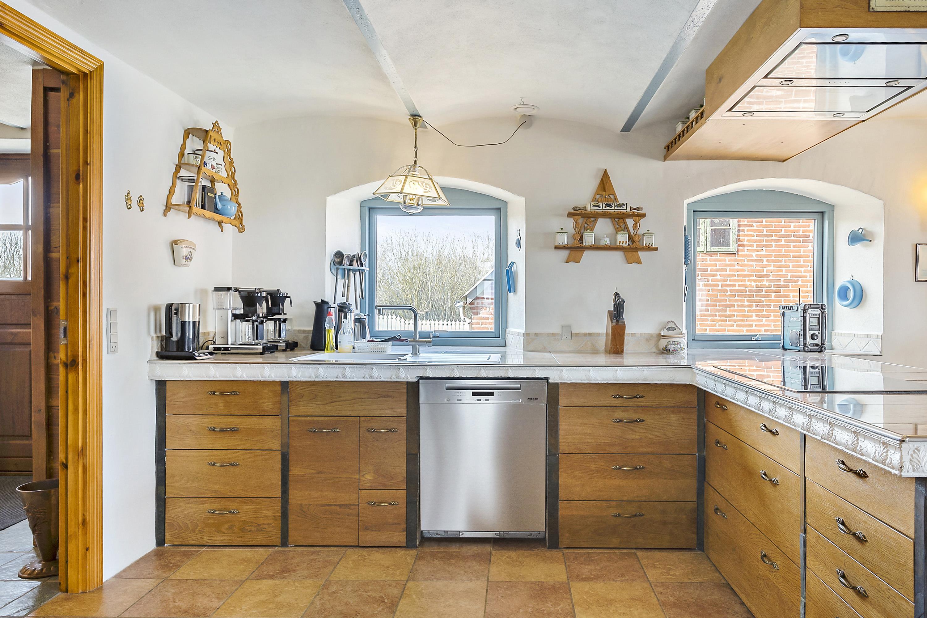 Am Rande Ærøskøbing erwartet Sie dieses attraktive, umfassend renovierte Ferienhaus, das mit einer Wohnfläche von nicht weniger als 340 m² zu bestechen weiß. Die Wohnfläche verteilt sich auf drei Etagen. Das im Jahr 1937 erbaute Steinhaus wurde im Jahr 2015 einer grundlegenden Renovierung unterzogen und präsentiert sich Ihnen daher in heutigen Tagen mit zahlreichen richtig schönen Details. Der Hauseigentümer hat die komplette Renovierung selber durchgeführt. Sein Augenmerk lag dabei darauf, Ihnen drei ausgesprochen geschmackvoll gestaltete Stockwerke zu bieten. Das Haus besticht zudem mit insgesamt sechs Schlafräumen – alle mit einem eigenen ansprechenden Badezimmer. Drei der vorhandenen Schlafzimmer verfügen zusätzlich über je einen schönen Schlafboden, auf dem wiederum jeweils zwei Matratzen zur Verfügung stehen. Im Erdgeschoss und im ersten Stockwerk treffen Sie auf zwei große Küchen, die offen mit dem jeweiligen Esszimmer und Wohnraum verbunden sind. Das Erdgeschoss beherbergt zudem ein Gäste-WC. Von nahezu allen Räumlichkeiten genießen Sie einen schier fantastischen Blick über das Meer. Im Keller werden Sie mit einem richtig schönen Badezimmer verwöhnt, in dem ein großer Whirlpool und eine doppelte Duschkabine für erholsame und entspannte Stunden voller Wellnessflair sorgen. Unter freiem Himmel erwarten Sie eine große, gepflasterte Terrasse und eine Sauna mit Fenstern in Richtung Meer. Falls Sie nach einem Urlaubsdomizil mit zahlreichen besonderen Details suchen, dann sind Sie hier im Nevre 27 bestens aufgehoben.