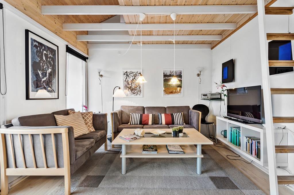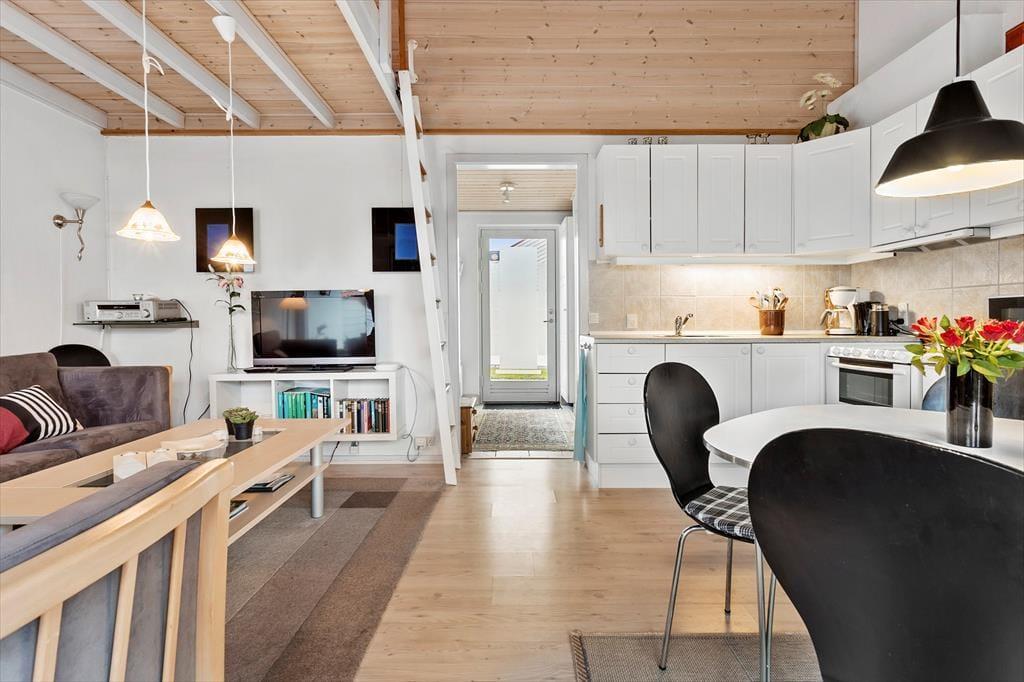 Wenn Sie das Haus betreten, werden Sie von einer hellen und freundlichen Wohnküche empfangen, in der Sie Ihre Mahlzeiten am schönen Esstisch genießen können. Der Wohnbereich verfügt außerdem über ein Fernsehzimmer, das zu gemütlichen Abenden mit Filmen und Entspannung einlädt. Das Wohnzimmer hat einen Zugang zu einem Dachboden, der zusätzlichen Schlafplatz und eine gemütliche Atmosphäre bietet. Das Haus ist mit komfortablen Möbeln eingerichtet, die ein heimeliges Gefühl vermitteln, sodass Sie sich schnell wohlfühlen und Ihren Urlaub genießen können.