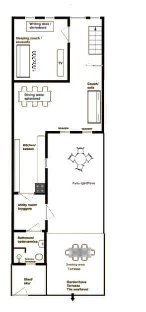 Im Eingangsbereich werden Sie von der schönen, originalen Treppe empfangen, die in das Obergeschoss führt. Das Erdgeschoss bietet ein gemütliches Wohnzimmer mit TV und Radio, ein stimmungsvolles Esszimmer sowie eine funktionale Küche mit Herd, Mini-Backofen, Mikrowelle und Kühlschrank mit Gefrierfach – ideal für entspannte Ferienmorgen und lange, gesellige Abendessen.