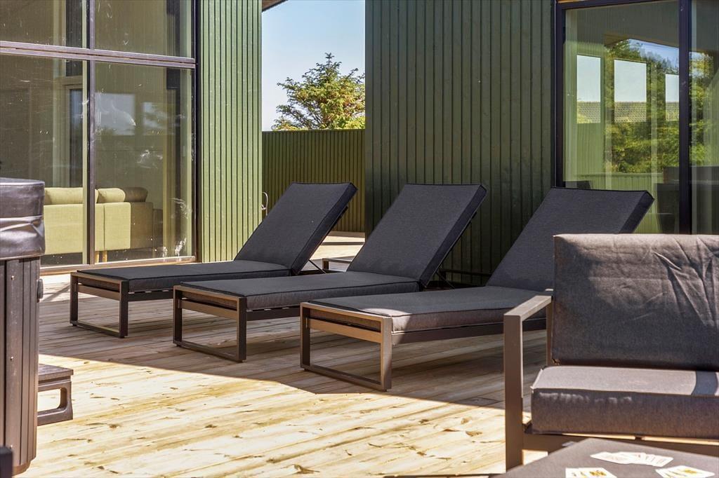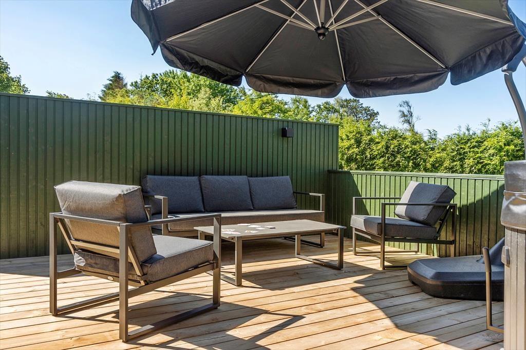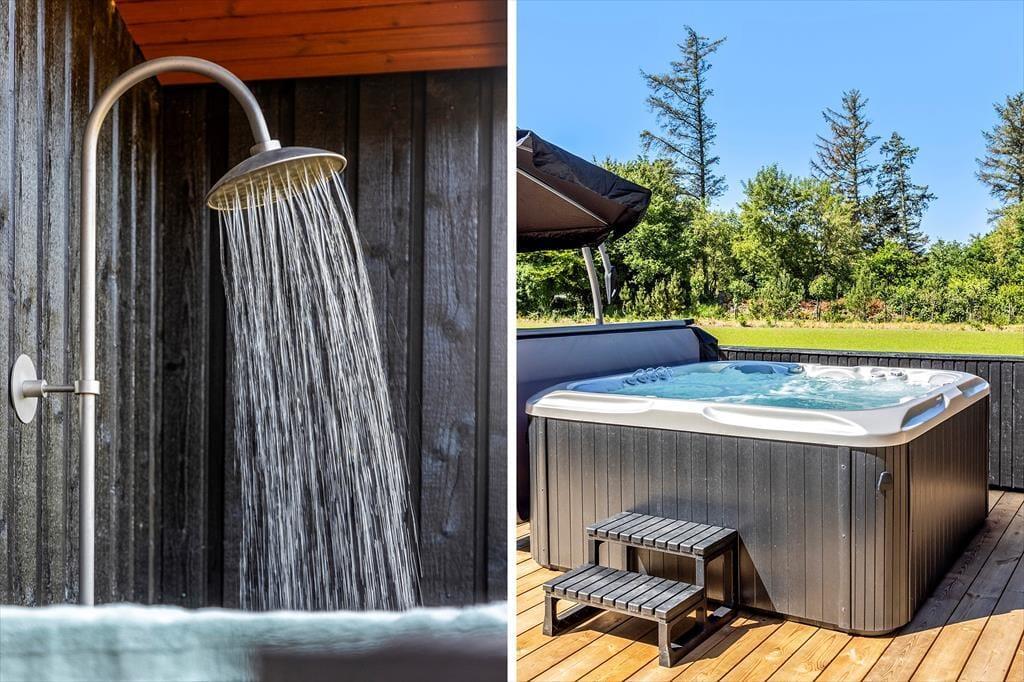 Wenn die Sonne scheint oder der Wind mild ist, verlagert sich das Urlaubsleben ganz natürlich nach draußen – und hier erfüllt das Haus alle Urlaubsträume. Die große Terrasse zieht sich rund um das Haus und bietet sowohl offene als auch überdachte Bereiche, sodass du immer ein sonniges – oder schattiges – Plätzchen findest. Abends könnt ihr den Grill anwerfen und den Tag mit einem Glas Wein im Outdoor-Whirlpool ausklingen lassen, während langsam die Sterne am Nachthimmel erscheinen. Das warme, sprudelnde Wasser und die frische Luft schaffen eine echte Wellnessatmosphäre – vielleicht findest du hier deinen neuen Lieblingsmoment. Der Garten ist groß und grün – perfekt für Ballspiele, Sonnenbaden oder ein entspannendes Nickerchen auf der Decke. Das Trampolin sorgt bei den Kindern für stundenlangen Spaß, während die Erwachsenen mit einem guten Buch oder einer Tasse Kaffee auf der Sonnenliege zur Ruhe kommen.