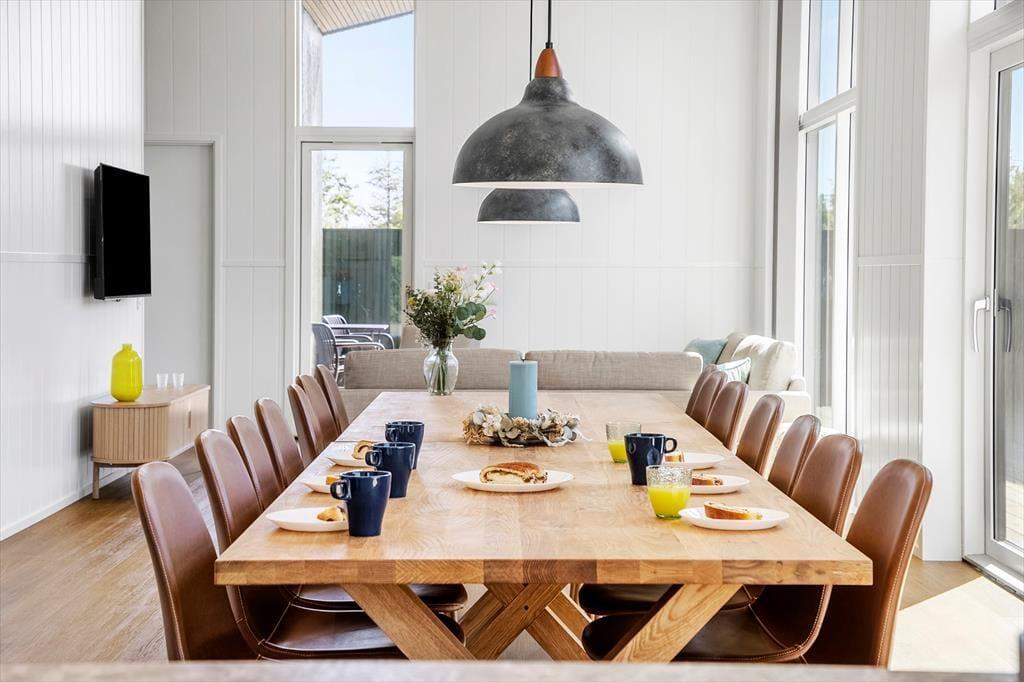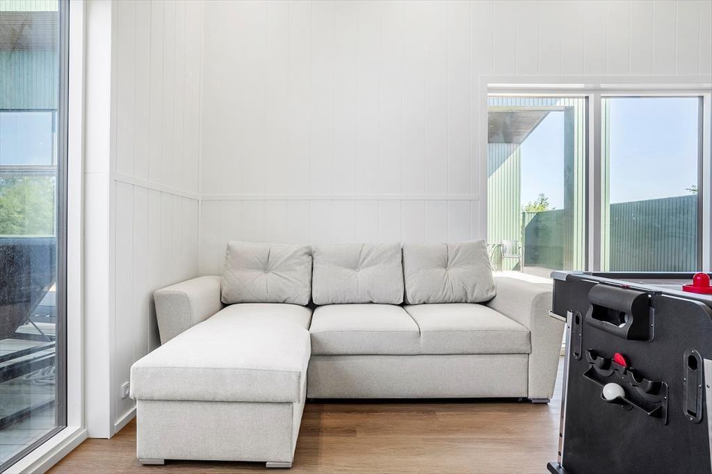 Nur 500 Meter vom Strand entfernt, ist es ein Leichtes, den Morgenkaffee mit ans Wasser zu nehmen oder den ganzen Tag mit Sand zwischen den Zehen und Salz im Haar zu verbringen. Süd-Salling bietet eine Vielzahl an Naturerlebnissen, kleinen gemütlichen Häfen und schönen Ausflugszielen – und ganz gleich, ob ihr Lust auf Radtouren durch die hügelige Landschaft habt, auf Eiswaffeln unter freiem Himmel oder einen stillen Abend am Fjord – hier werdet ihr fündig. Der Strand lädt zu Badefreuden und Entspannung ein, und die Gegend rund um Mølleparken ist ruhig und familienfreundlich. Wenn ihr davon träumt, gemeinsam mit Familie oder Freunden Urlaub zu machen, solltet ihr wissen, dass sich direkt nebenan ein identisches Ferienhaus befindet. Wenn ihr beide Häuser bucht, bekommt ihr die perfekte Kombination aus Gemeinschaft und Privatsphäre – ideal für alle, die zusammen sein möchten und sich dennoch auch mal zurückziehen wollen.