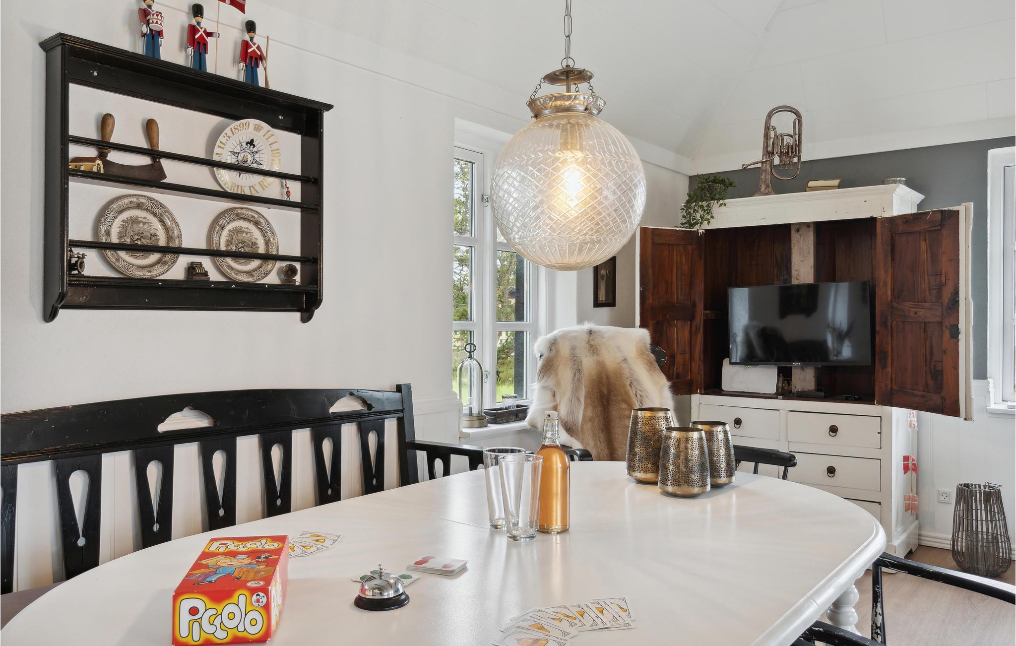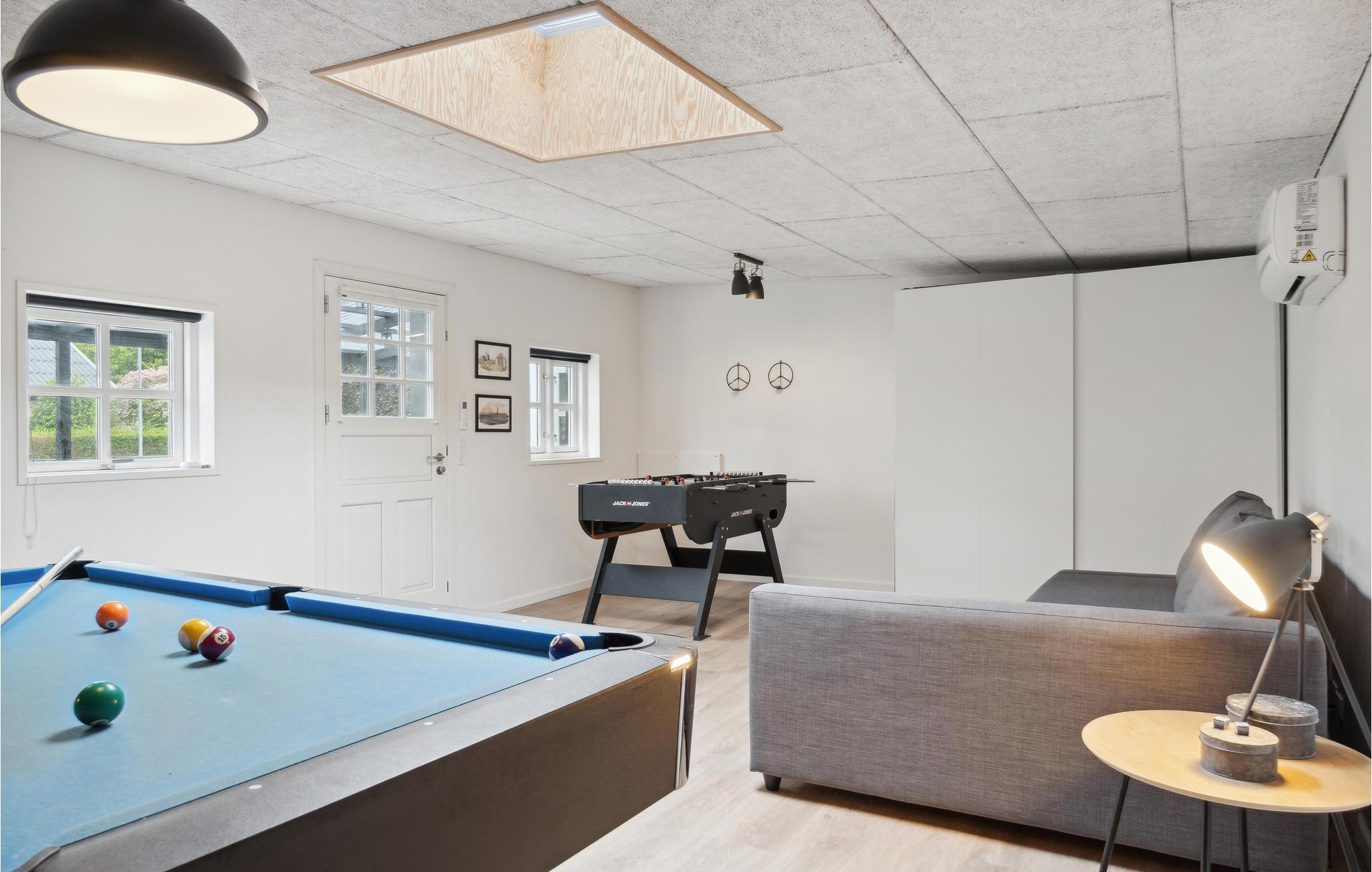 Reisen Sie mit Ihrer Familie in den Norden Dänemarks und verbringen am schönen Kattegat Strand unvergessliche Ferien. Wenn ihnen eine stilvolle und komfortable Einrichtung mit schönen dekorativen Akzenten wichtig sind, ist das einladende Ferienhaus genau das richtige für Sie. Kommen Sie im offenen Wohnraum, mit sichtbare Holzbalken, zum Spielen und Kochen zusammen. Ein zusätzlicher Aktivitätsraum bietet Ihnen zudem Spaß beim Billard oder Tischkicker und lässt Sie lange Abende mit Unterhaltung verbringen.