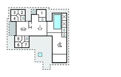 Badezimmer (nr. 5) - WC. Warmes und kaltes Wasser. Dusche
