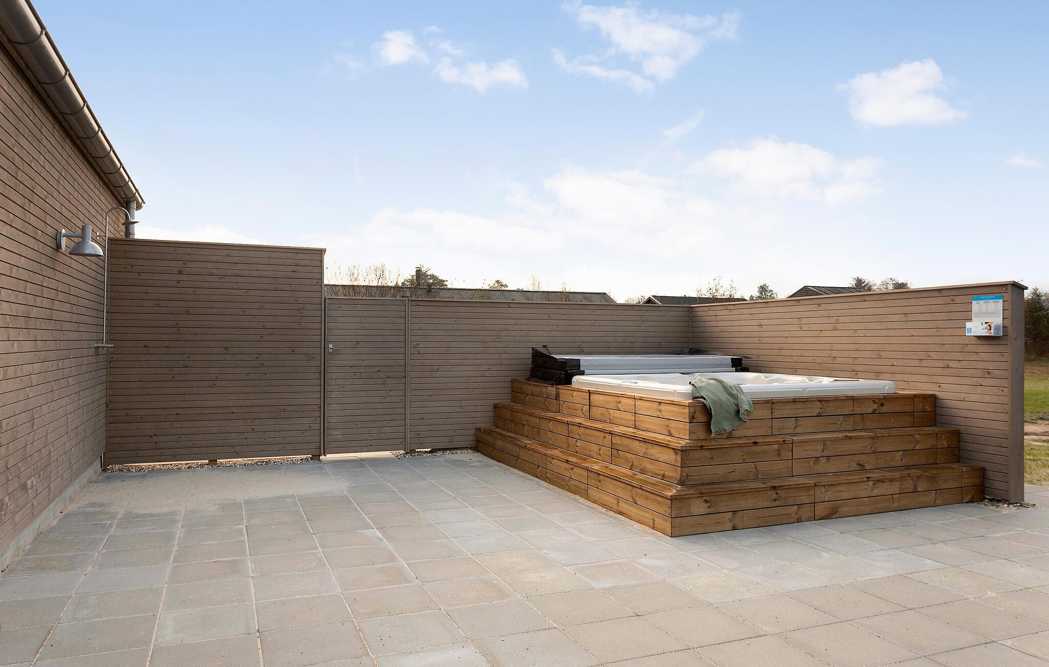 Nutzen Sie den großen Außenbereich für gesellige Stunden. Nehmen Sie im warmen Außenwhirlpool Platz oder genießen Sie die frische Luft bei einem gemütlichen Abendessen unter freiem Himmel. Die geschützte Lage ermöglicht ungestörte Momente im Freien und bietet viel Raum für alle Mitreisenden.