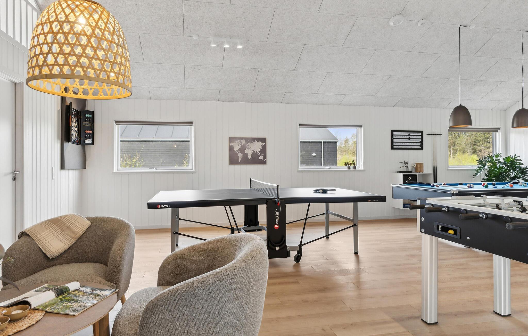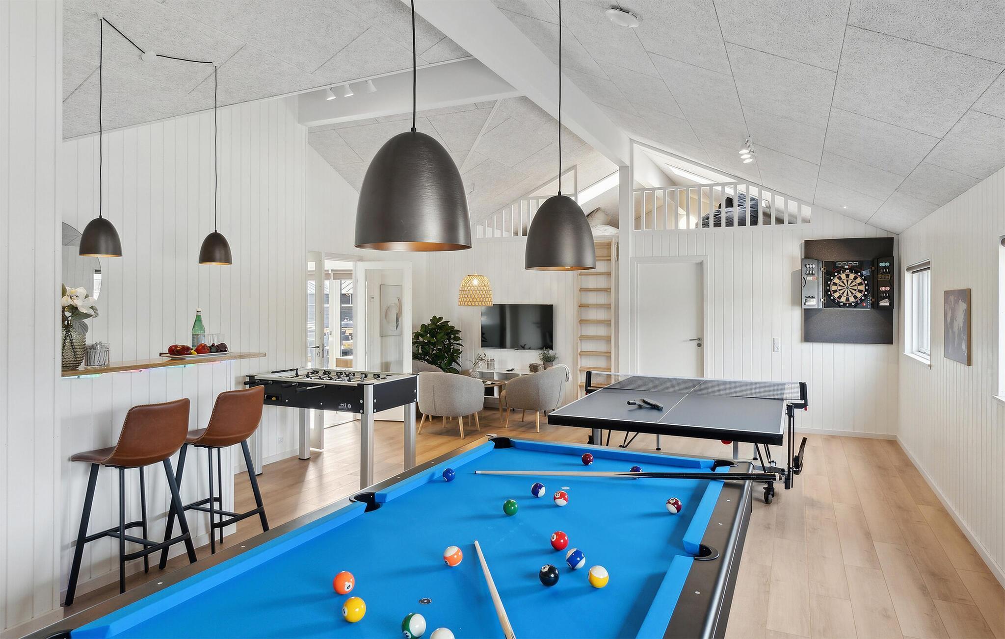 Willkommen in diesem komfortablen und geräumigen Haus, das Sie in kurzer Entfernung zum Strand empfängt und alles für eine Auszeit in ansprechendem Ambiente bietet. Der Pool verspricht Badespaß für Groß und Klein unabhängig vom Wetter. Freuen Sie sich auf gemütliche Abende, wenn Sie von Ihren Unternehmungen zurückkehren, entspannen Sie in der Sauna, kochen Sie gemeinsam, machen Sie es sich nach dem Abendessen am Kaminofen gemütlich und sehen Sie mit dem hauseigenen Projektor ein Fußballspiel auf der großen Leinwand.