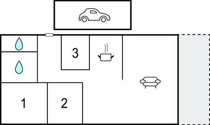 Wohnraum/Küche - 1 Schlafmöglichkeit. (Einzelbett(en)).