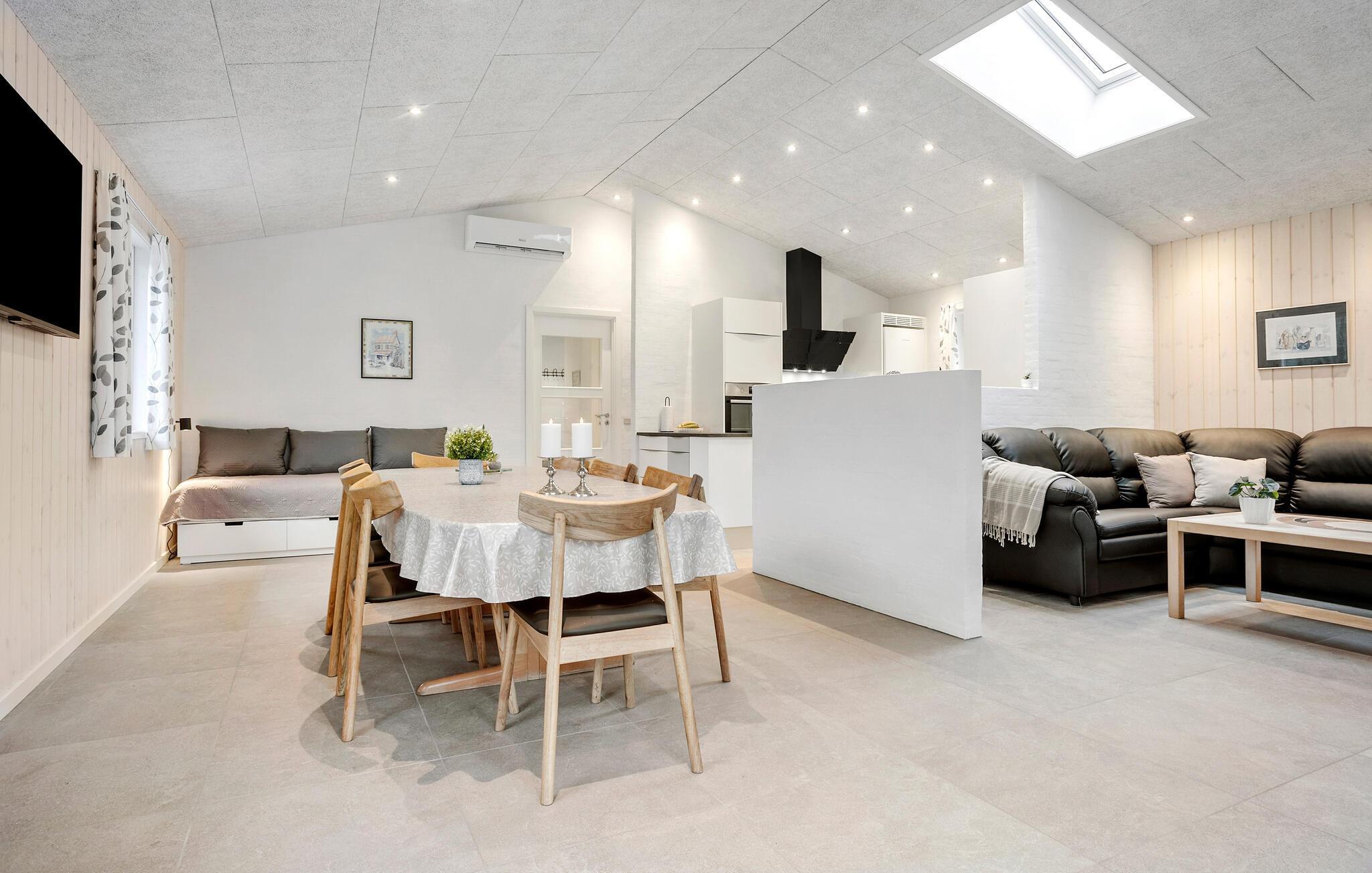 Freuen Sie sich auf eine entspannte Auszeit in Ihrem wunderschön gelegenen Ferienhaus in Ålbæk, das Ihnen Komfort und Ruhe inmitten einer malerischen Umgebung bietet. Das stilvolle Ferienhaus überzeugt mit einem hellen und großzügigen Innenbereich. Die offene Wohnküche ist modern ausgestattet und bietet Ihnen alle Annehmlichkeiten, um köstliche Mahlzeiten zuzubereiten. Der angrenzende Essbereich lädt zu gemeinsamen Mahlzeiten ein, während das gemütliche Wohnzimmer mit einem Kamin und einer komfortablen Sofalandschaft zum Verweilen einlädt. Genießen Sie entspannte Abende mit einem Buch oder einem Film und lassen Sie die Seele baumeln.