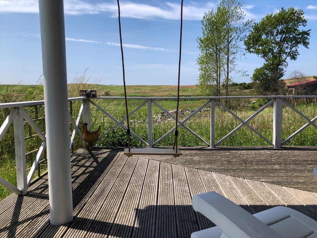 Die geräumige Terrasse ist ideal für entspannte Tage in der Sonne. Hier können Sie morgens mit einer Tasse Kaffee sitzen und das Rauschen der Bäume als Hintergrundmusik für Ihren Tag hören. Wenn es Abend wird, ist es Zeit für ein gemütliches Grillabendessen, bei dem Sie die frische Luft genießen und vielleicht einen Blick auf den Sonnenuntergang erhaschen können. Das große, vollständig eingezäunte Gelände rund um das Haus, auf dem Kinder und Hunde frei und sicher spielen können, bietet reichlich Gelegenheit zum Spielen und Entspannen, vielleicht bei einer Partie Boccia oder einfach nur für einen ruhigen Moment im Liegestuhl mit einem guten Buch?